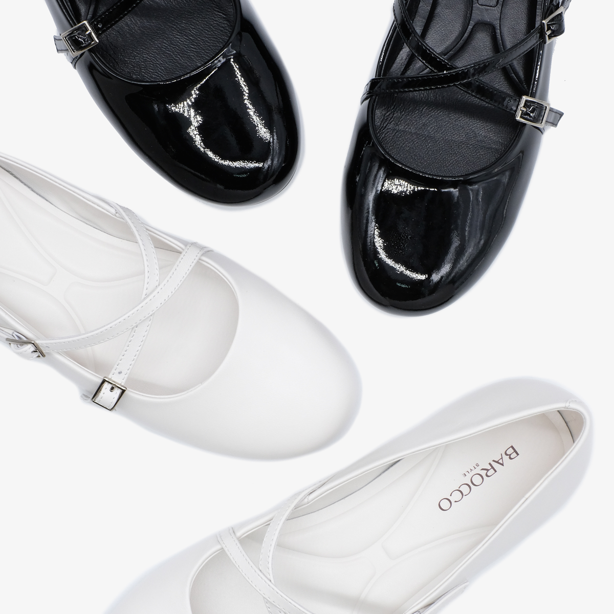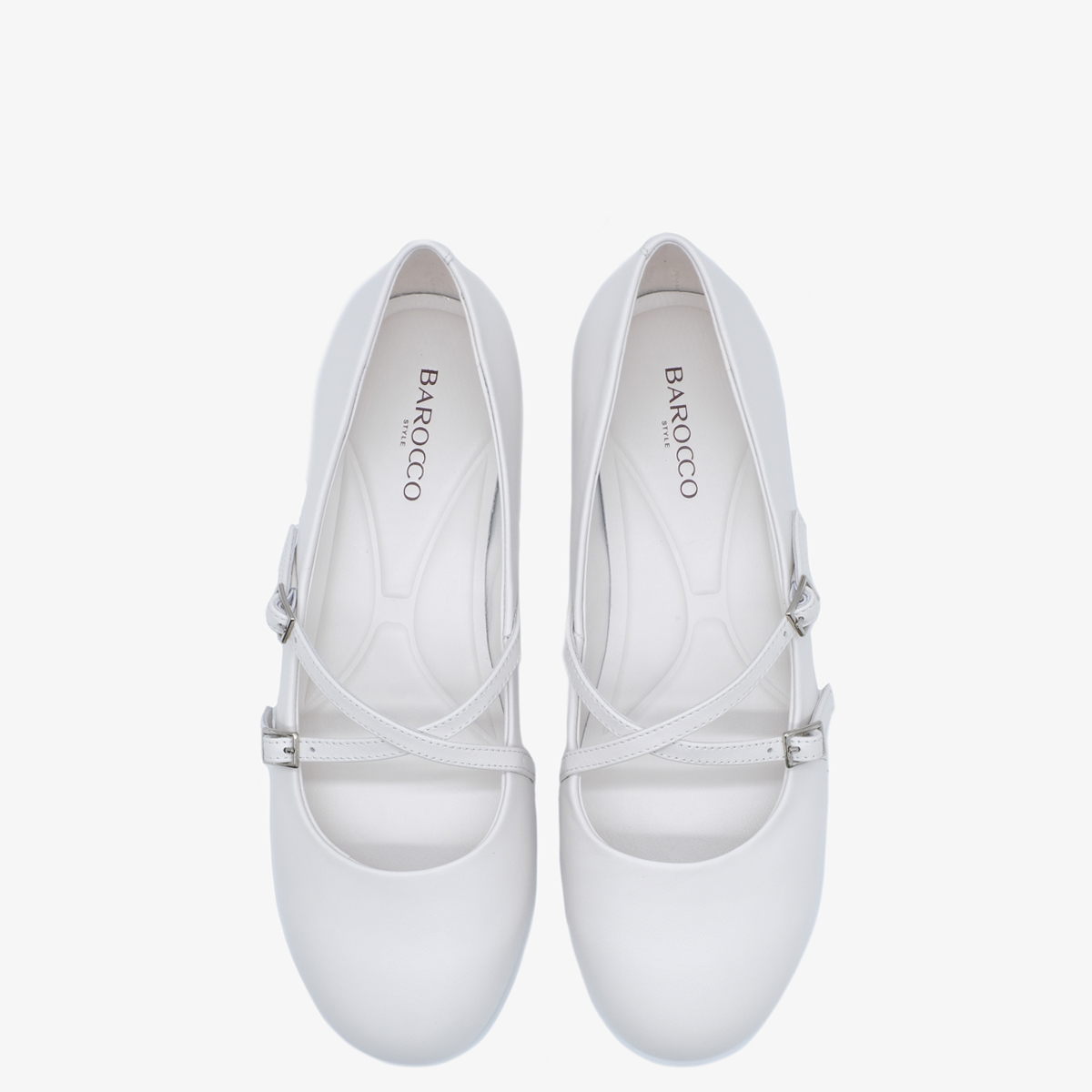 Балетки 10348 белого цвета, выполненные из натуральной кожи, — это стильный и элегантный выбор для женщин, ценящих комфорт и качество. Эти балетки с широким каблуком и закругленным мысом обеспечивают надежную поддержку и максимальный комфорт при ходьбе. Переплетение тонких ремешков с пряжками на подъеме добавляет изысканности и позволяет индивидуально регулировать посадку.