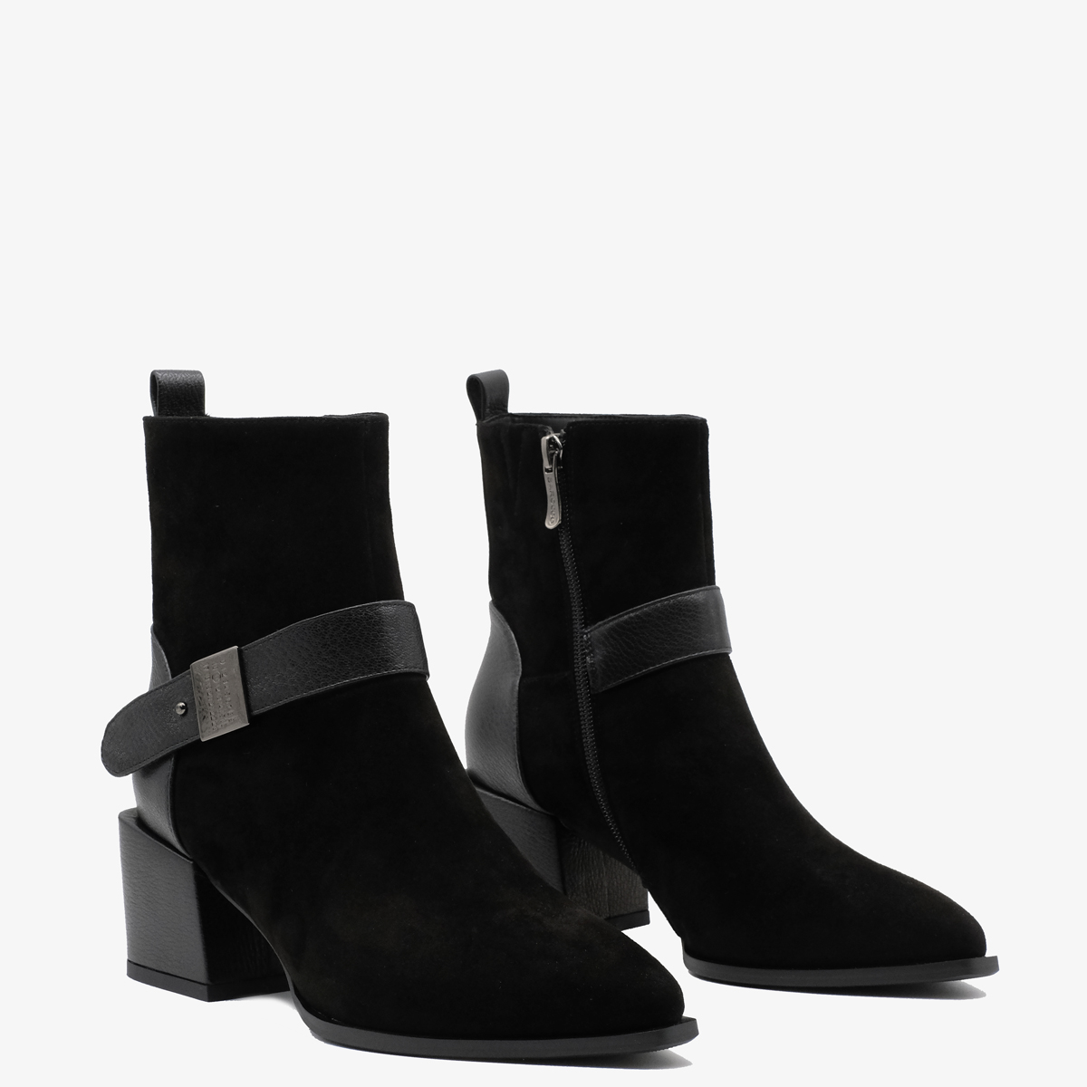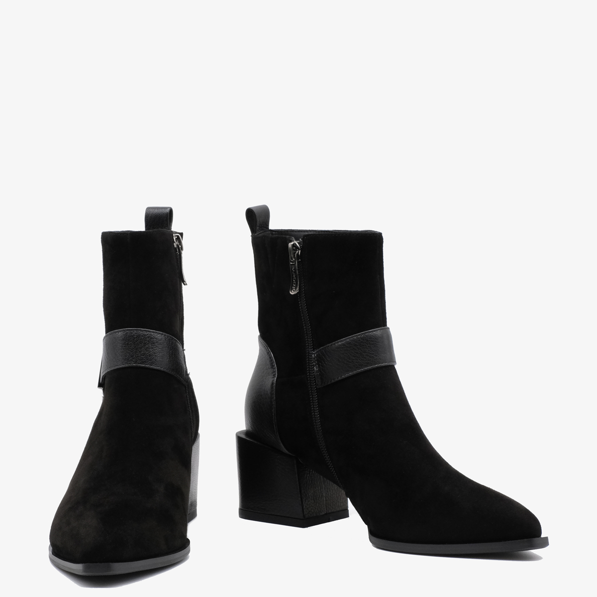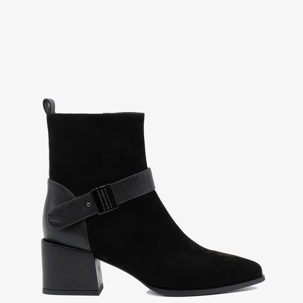 Ботильоны 10176 черного цвета изготовлены из натуральной замши и натуральной кожи, что делает их идеальным выбором для тех, кто ценит качество и элегантность. Устойчивый каблук (каблук обтянут натуральной кожей) и острый мыс обеспечивают не только привлекательный внешний вид, но и комфорт при носке. Молния с внутренней стороны облегчает процесс надевания, а ремешок с металлическим декором добавляет стильный акцент.