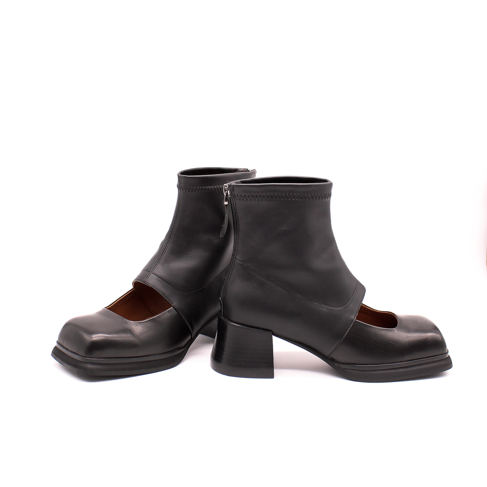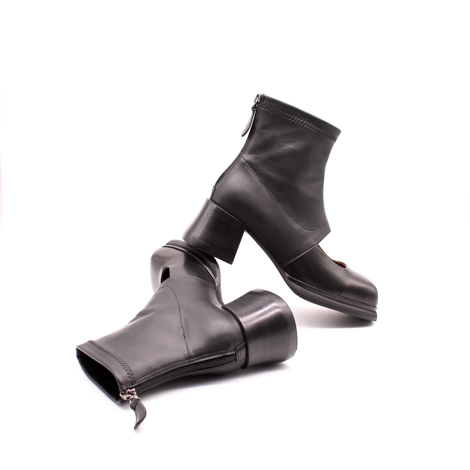 Ботильоны 9079 из натуральной кожи в черном цвете – стильный выбор для модных женщин. Основное преимущество этих ботильонов – устойчивый каблук, квадратный мыс, открытый подъем и удобная застежка-молния в пяточной части, обеспечивающие комфорт и безопасность при носке.