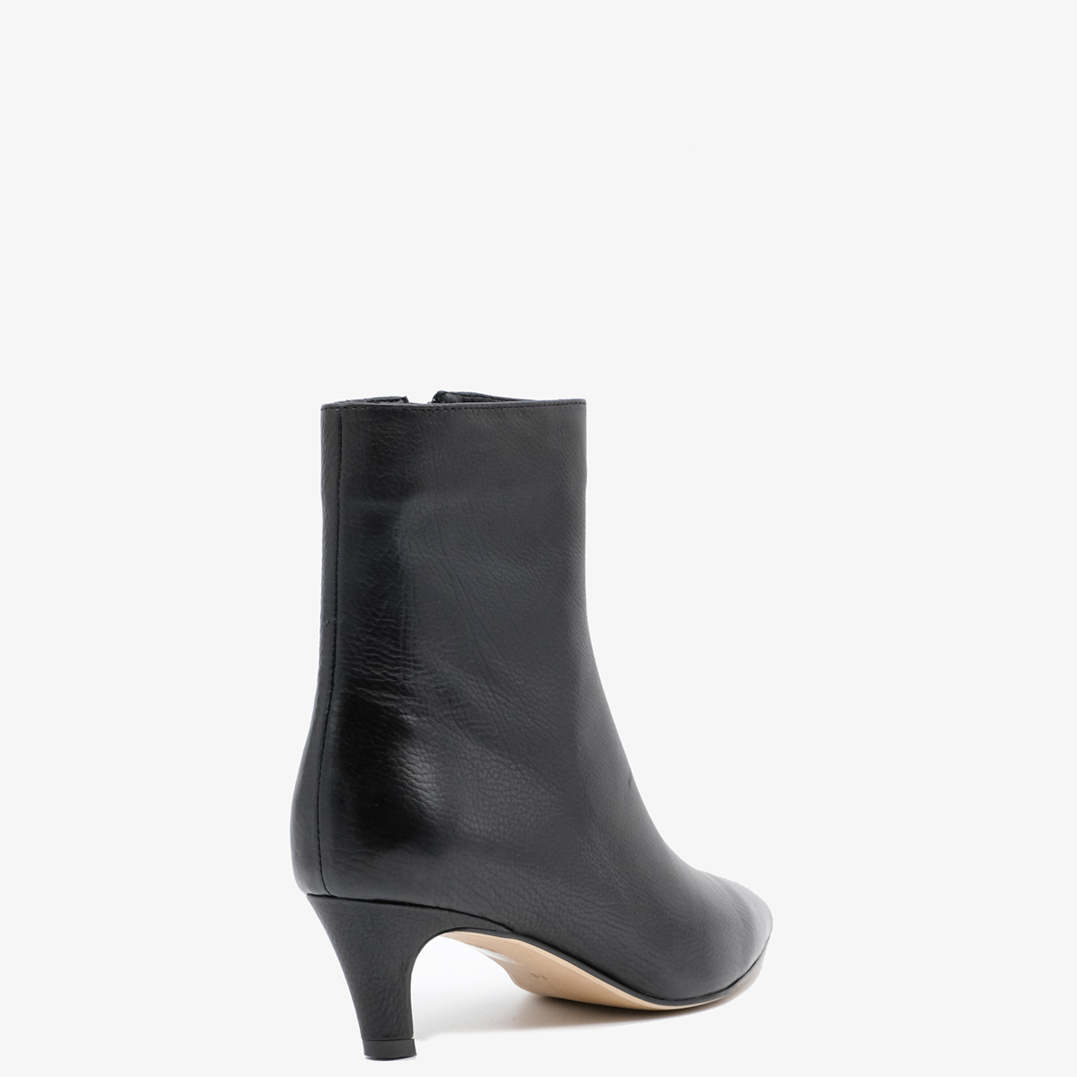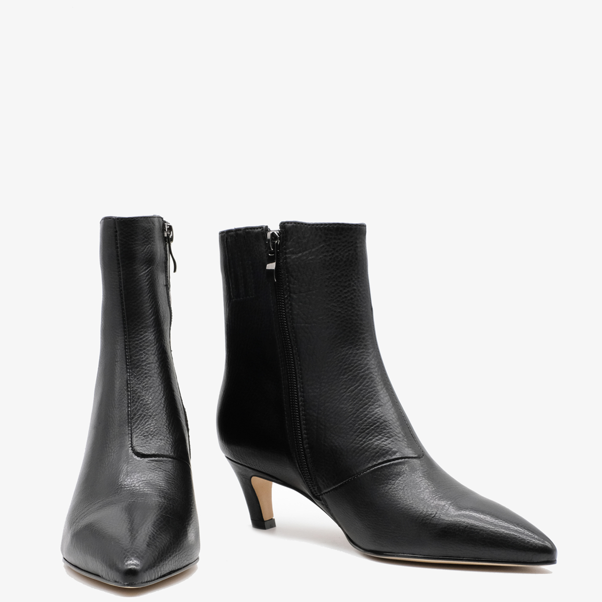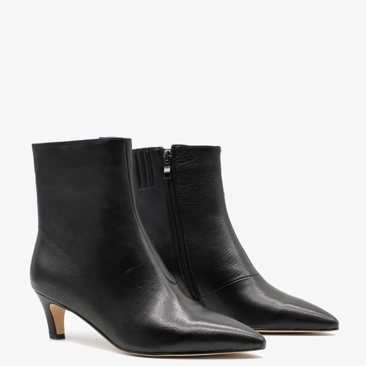 Ботильоны 9935 черного цвета из натуральной кожи — это стильная и элегантная обувь. Устойчивый каблук (каблук обтянут натуральной кожей) и острый мыс обеспечивают не только современный внешний вид, но и комфорт при длительной носке. Молния с внутренней стороны упрощает процесс надевания и снятия обуви.