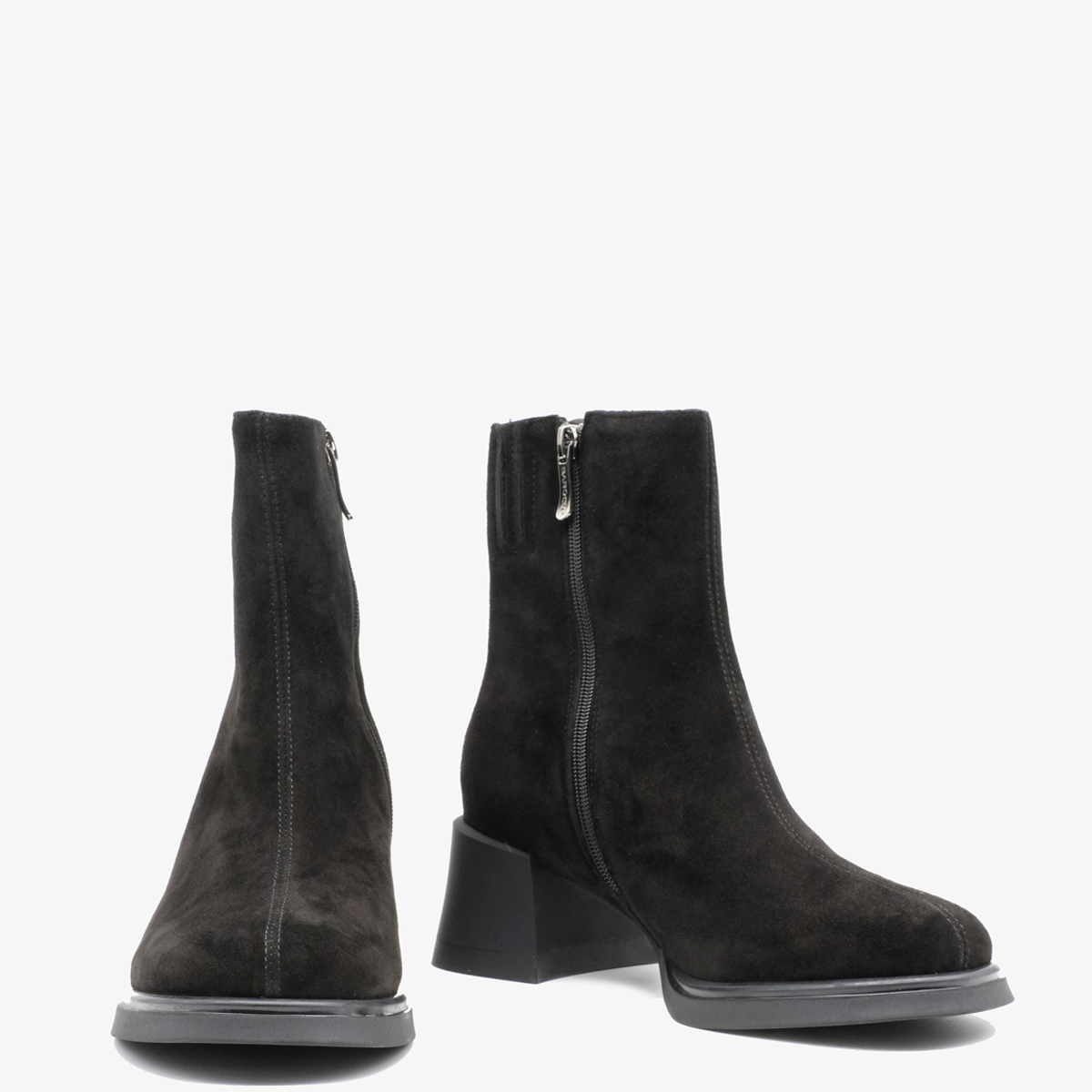 Ботильоны 9948 черного цвета из натуральной замши станут идеальным дополнением Вашего гардероба. Широкий каблук и закругленный мыс обеспечивают комфорт при носке, а молния с внутренней стороны упрощает процесс обувания и снимания.