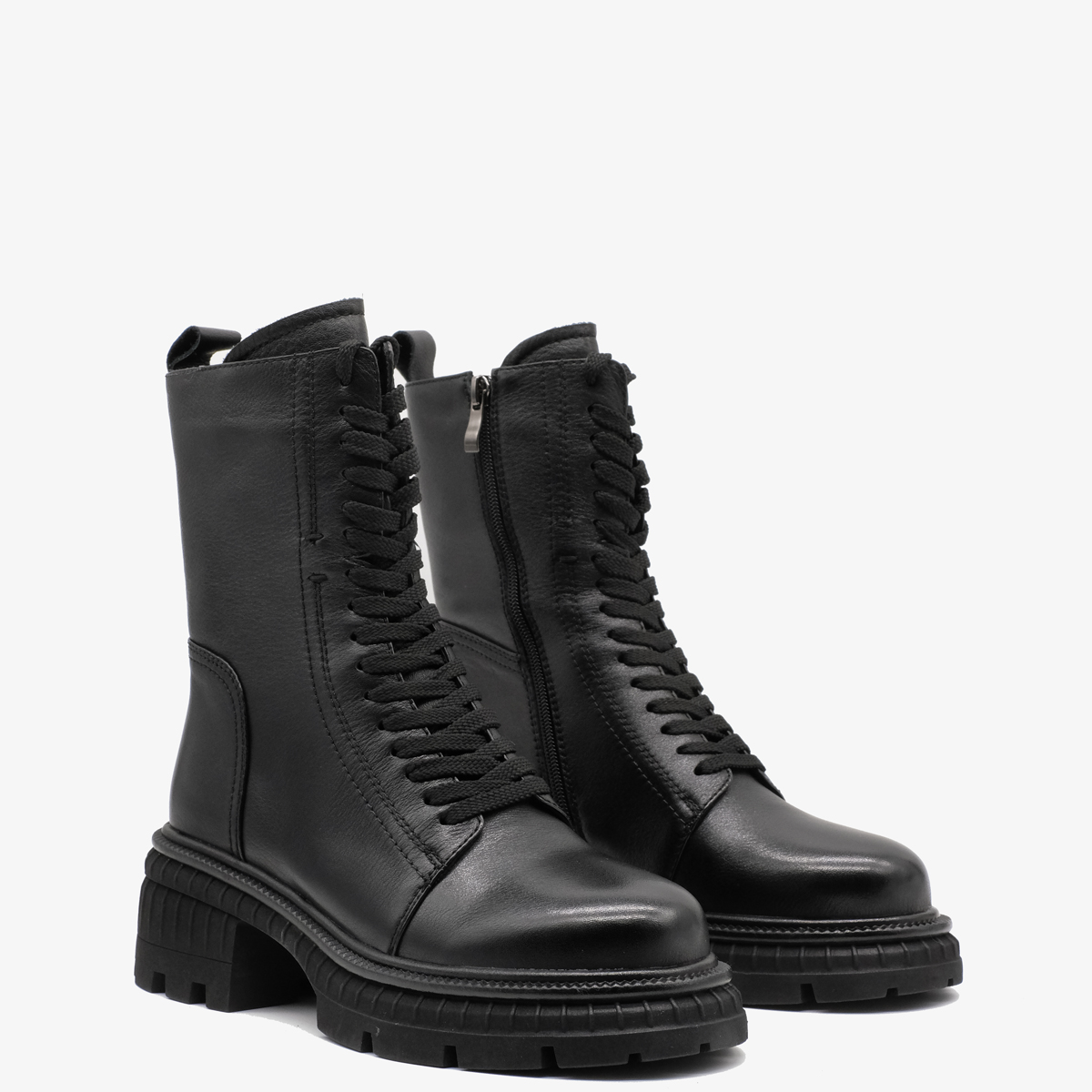Ботинки 10054 черного цвета выполнены из натуральной кожи, что придает им элегантный и современный вид. Широкий каблук и закругленный мыс обеспечивают максимальный комфорт при носке, позволяя Вам оставаться на ногах весь день без усталости. Молния с внутренней стороны и шнуровка на подъеме добавляют удобство в использовании и стильный акцент.