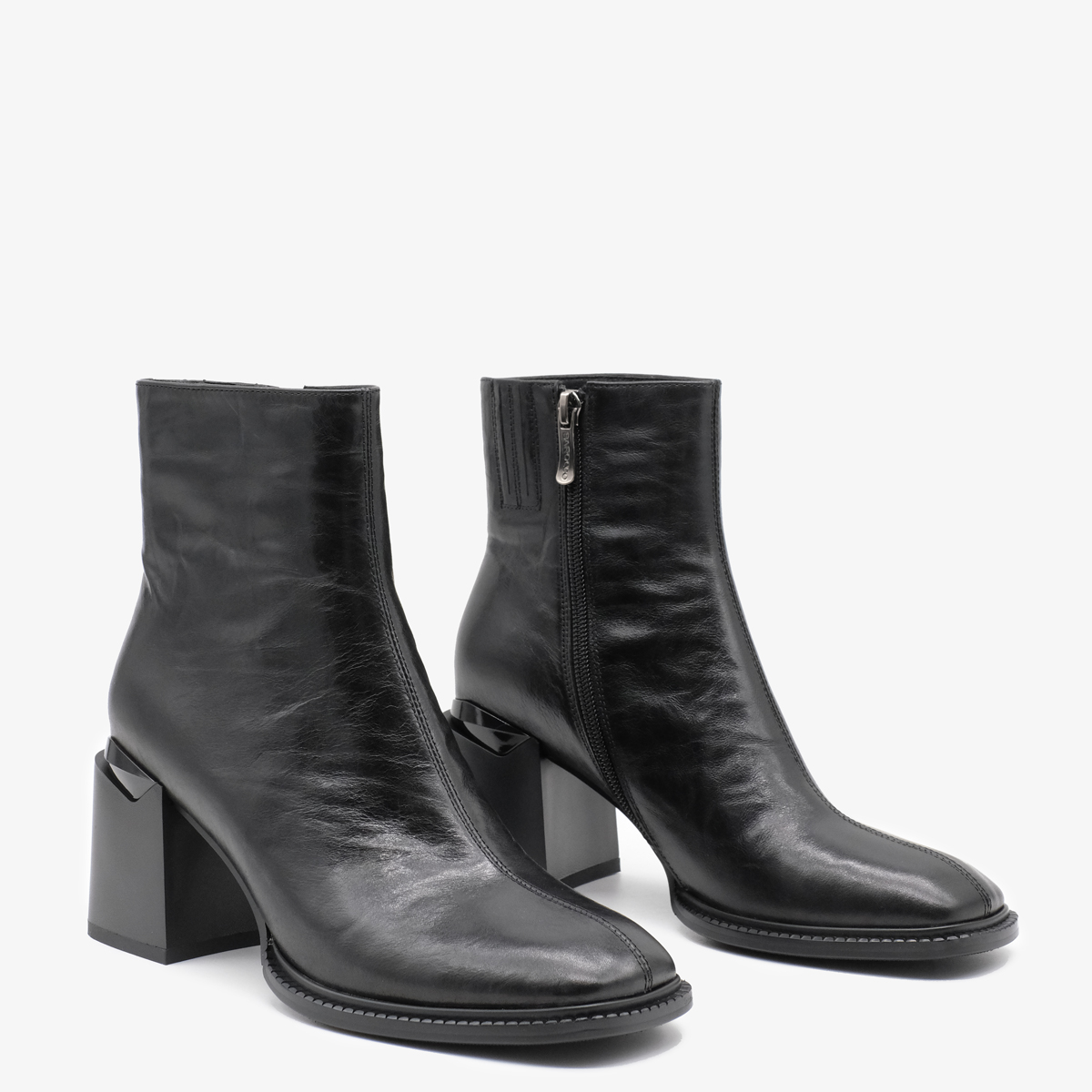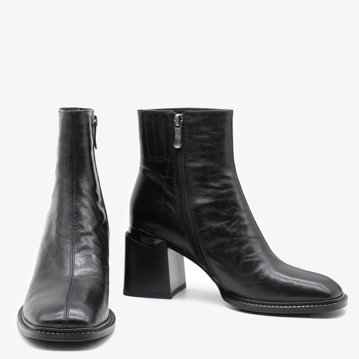 Ботильоны 10904, изготовленные из натуральной кожи черного цвета, идеально подойдут для создания элегантного образа. Ботильоны оснащены устойчивым каблуком и закругленным мысом, что обеспечивает комфорт и стабильность при ходьбе. Молния с внутренней стороны делает их удобными и практичными в использовании. Декор на каблуке создает стильный акцент.