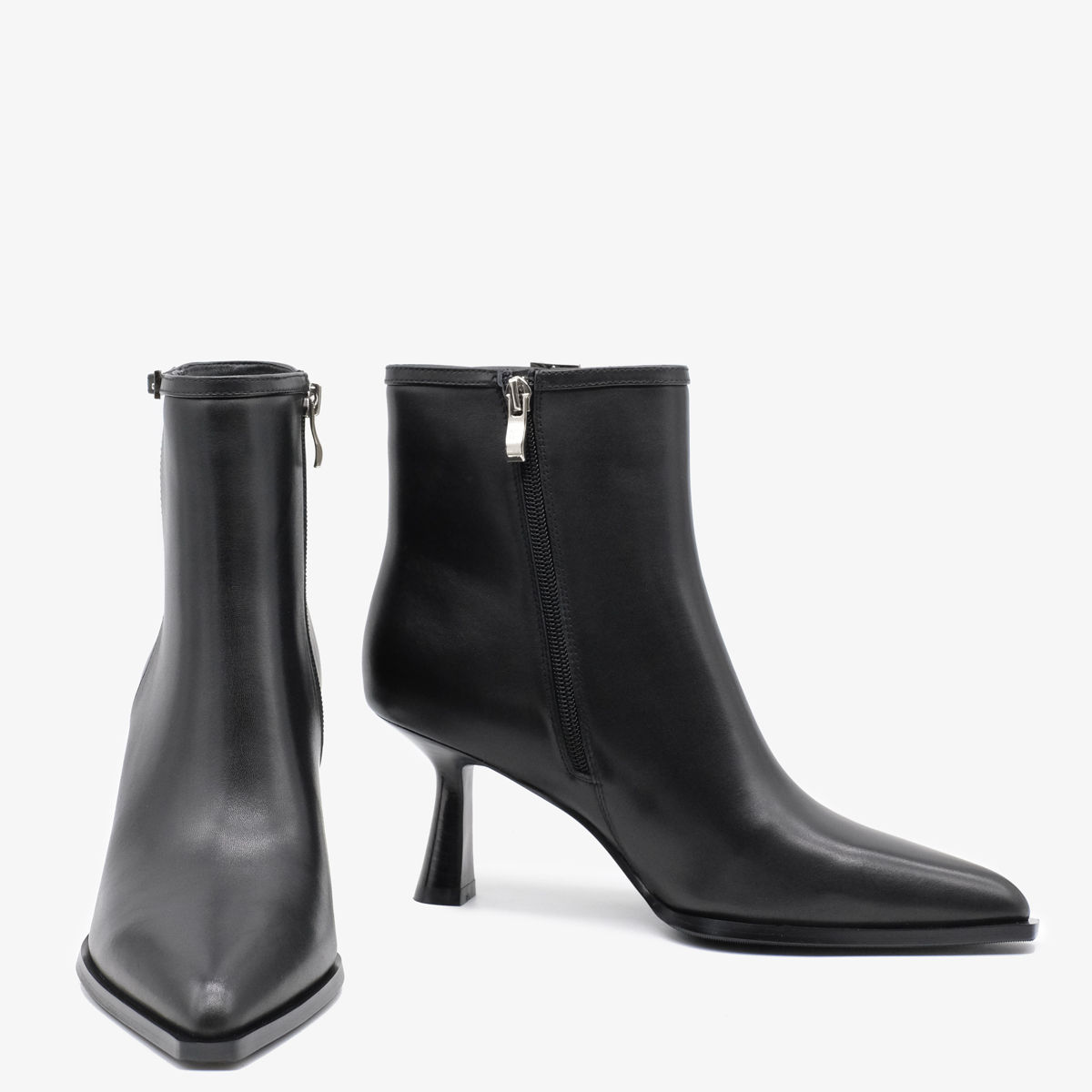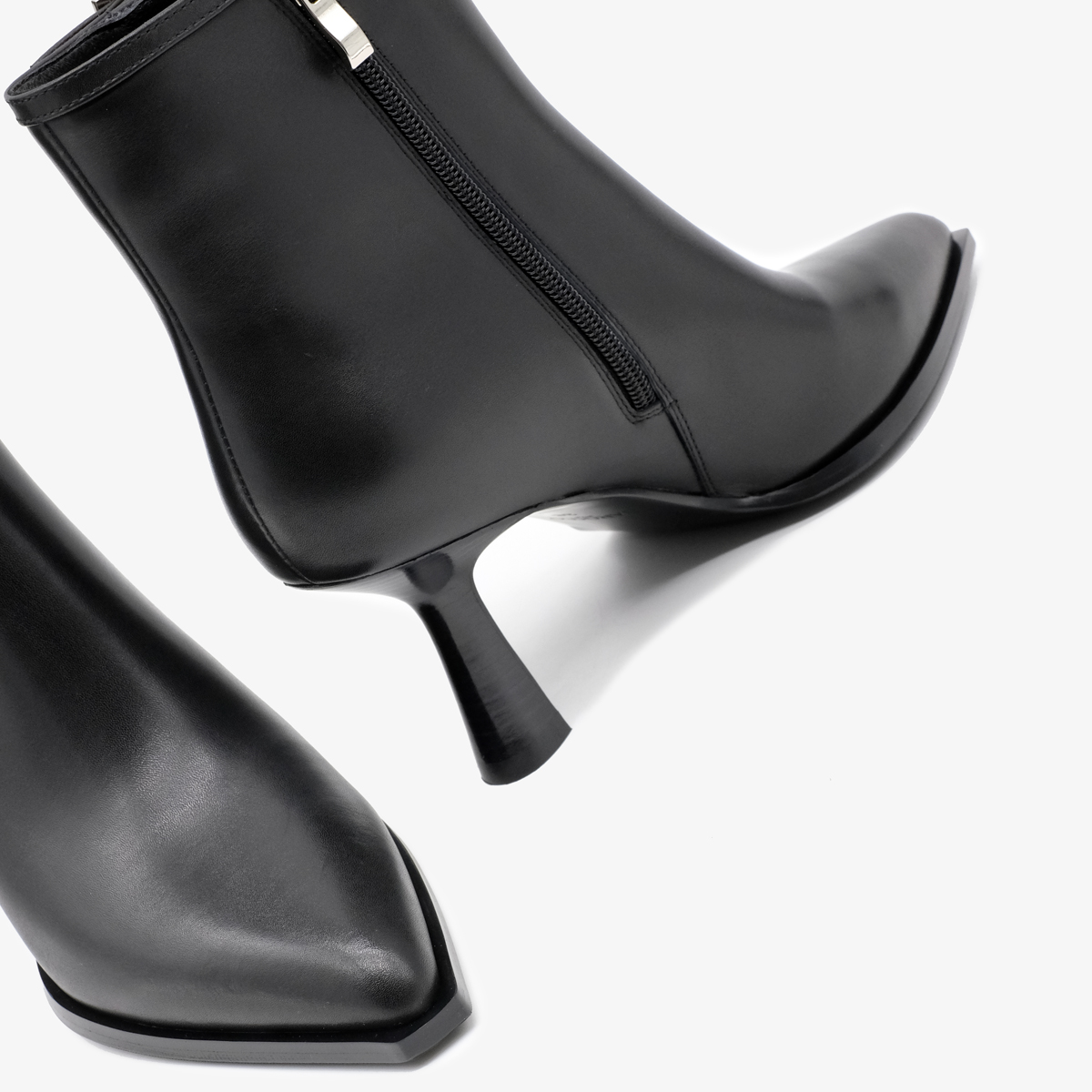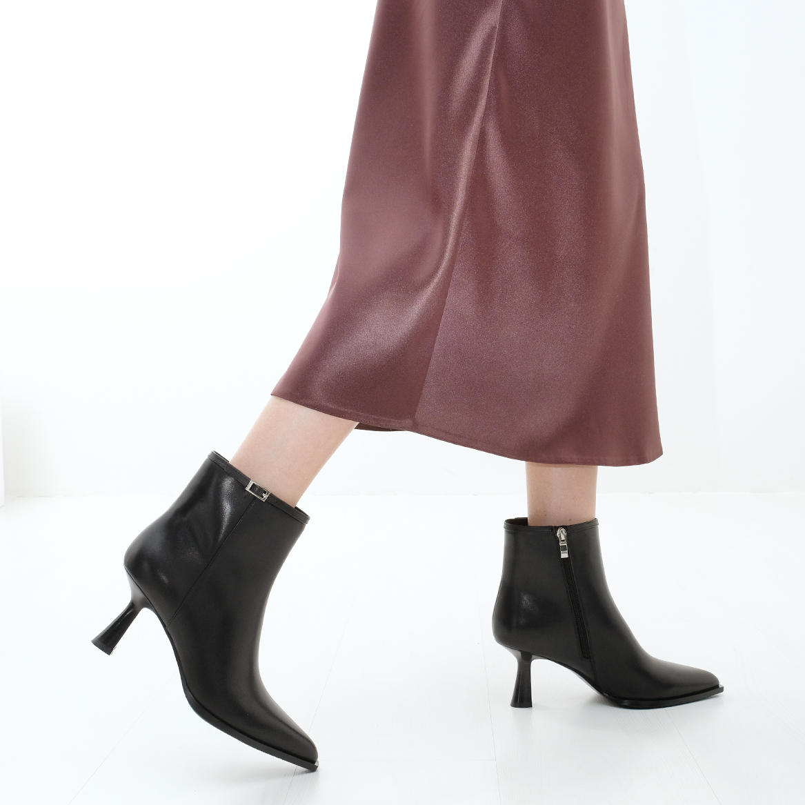 Ботильоны 10971 черного цвета выполнены из натуральной кожи, что придает им элегантный и современный вид. Устойчивый каблук и острый мыс обеспечивают не только стильный внешний вид, но и комфорт при длительном ношении. Молния с внутренней стороны позволяет легко обуваться, а декор в виде тонкого ремешка с пряжкой добавляет изысканности.