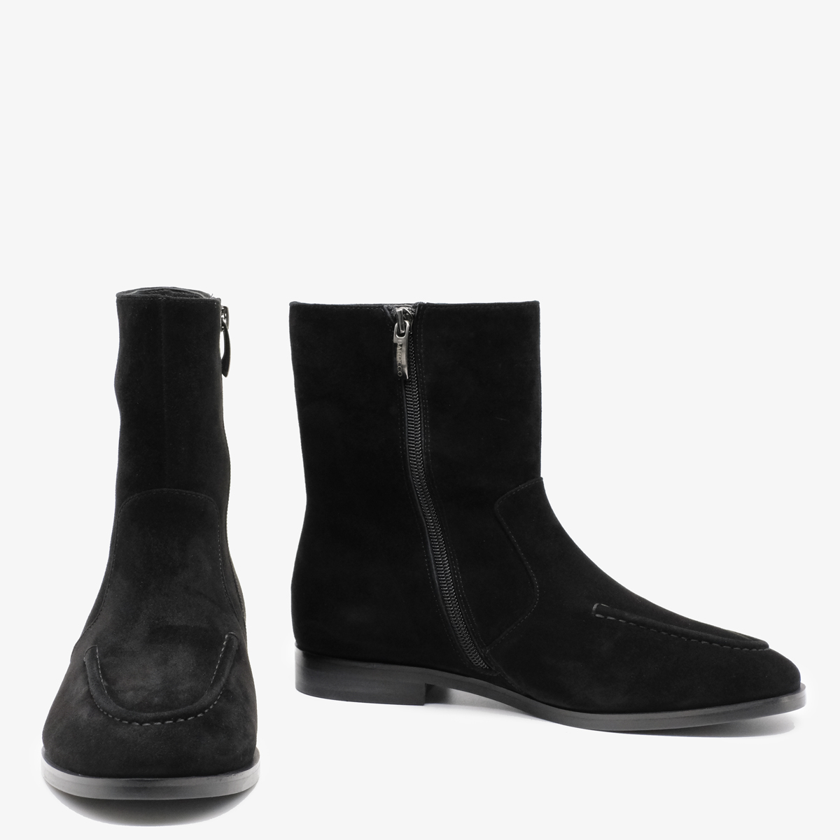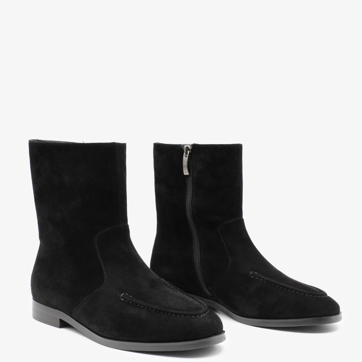 Черные ботинки 11035 из натуральной замши — стильный и элегантный выбор для Вашего гардероба. Широкий каблук и закругленный мыс обеспечивают отличную устойчивость и комфорт при ходьбе, а молния с внутренней стороны позволяет легко надевать и снимать обувь.