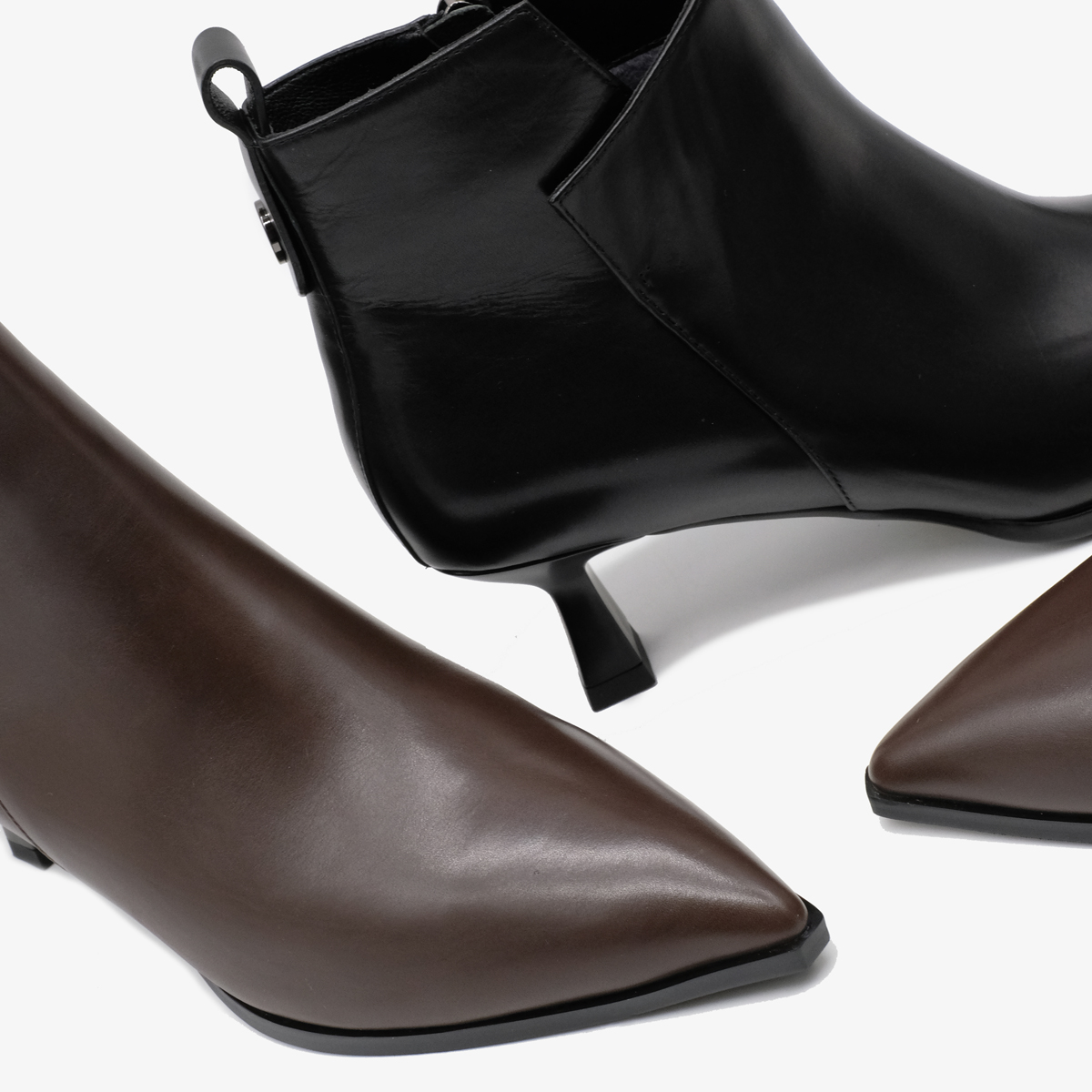 Комфортная высота каблука в 5,5 см. Прочная подошва из полимера (ТЭП). Внутри ботильоны утеплены мягким ворсином. Материал верха — премиальная натуральная кожа.