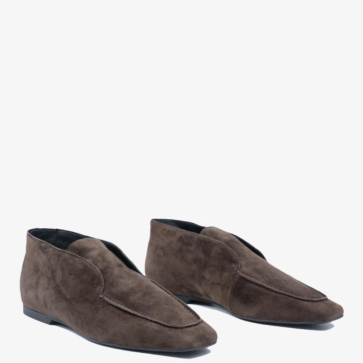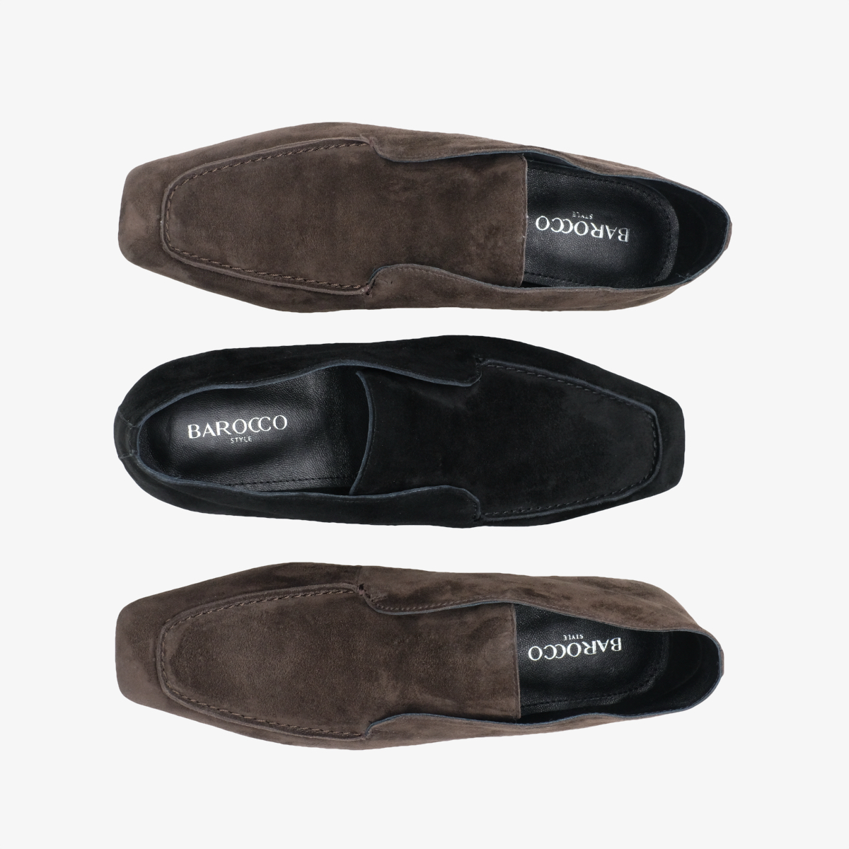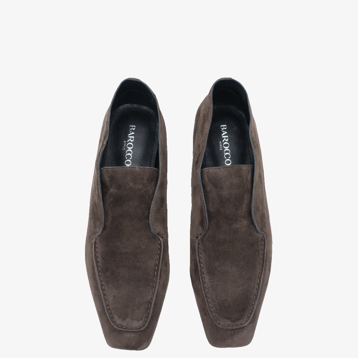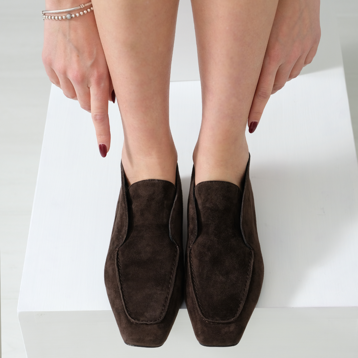 Туфли 11084 из натуральной замши коричневого цвета, что придает им элегантный и современный вид. Широкий каблук и квадратный мыс обеспечивают стабильность и комфорт при ходьбе, а минималистичный дизайн позволяет легко сочетать их с различными нарядами.