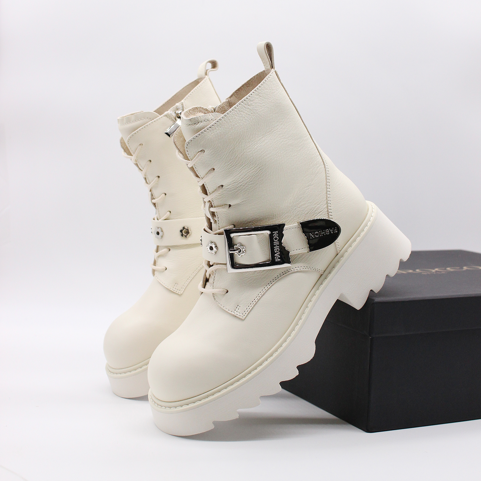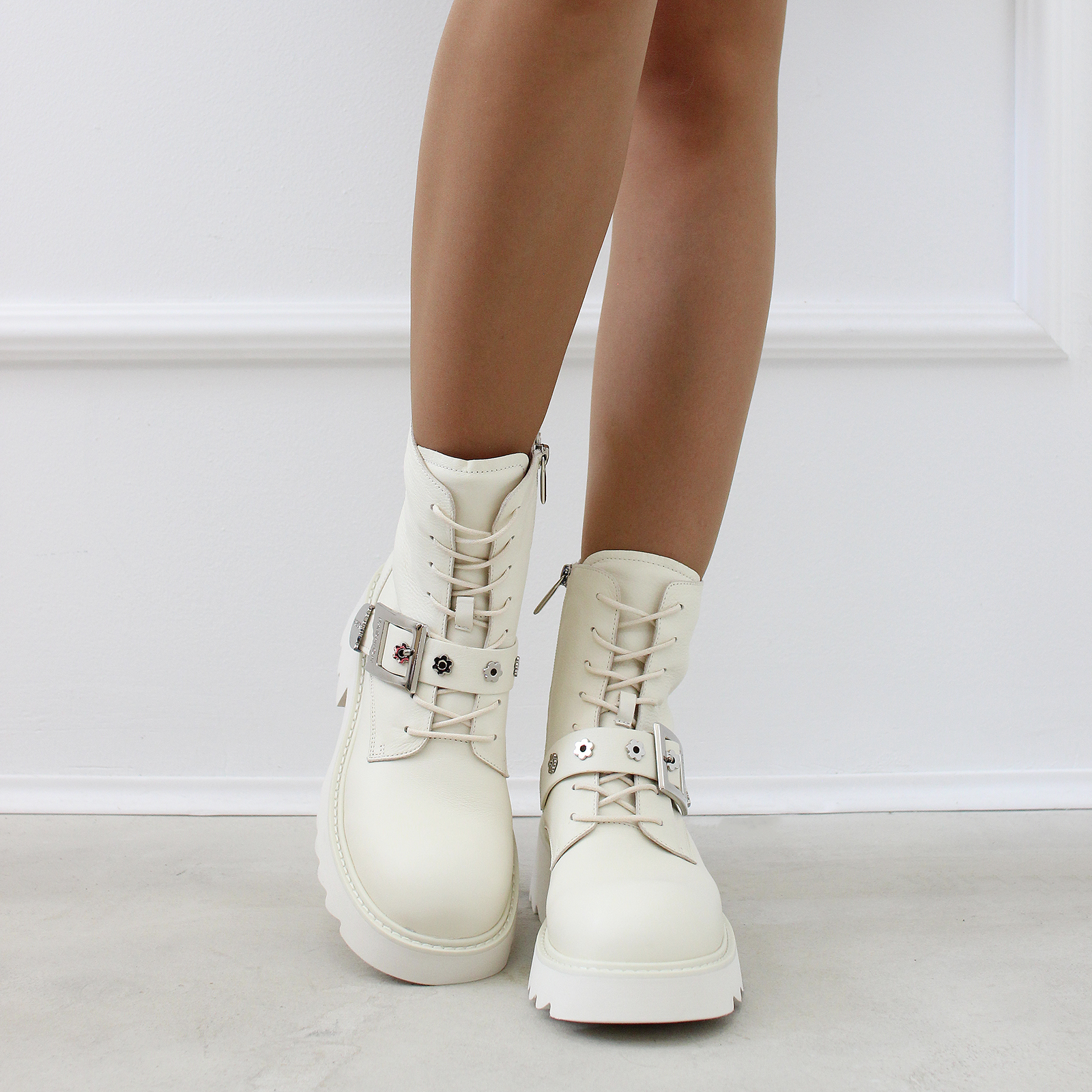 Ботинки BAROCCO TX5010B-21R-2 изготовлены из качественной натуральной кожи молочного цвета.
