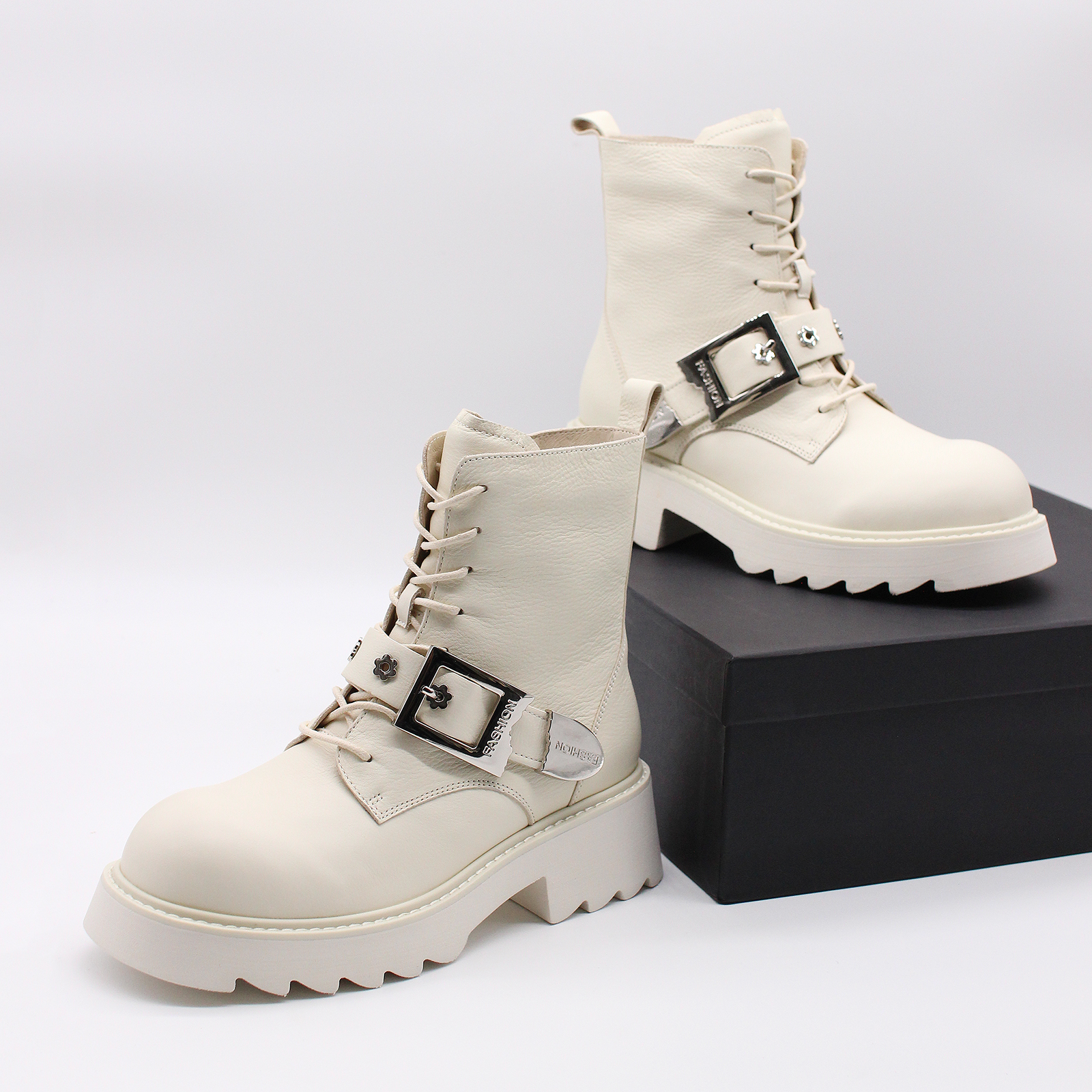 - Верх ботинок изготовлен из натуральной кожи, обеспечивая прочность и элегантный внешний вид.