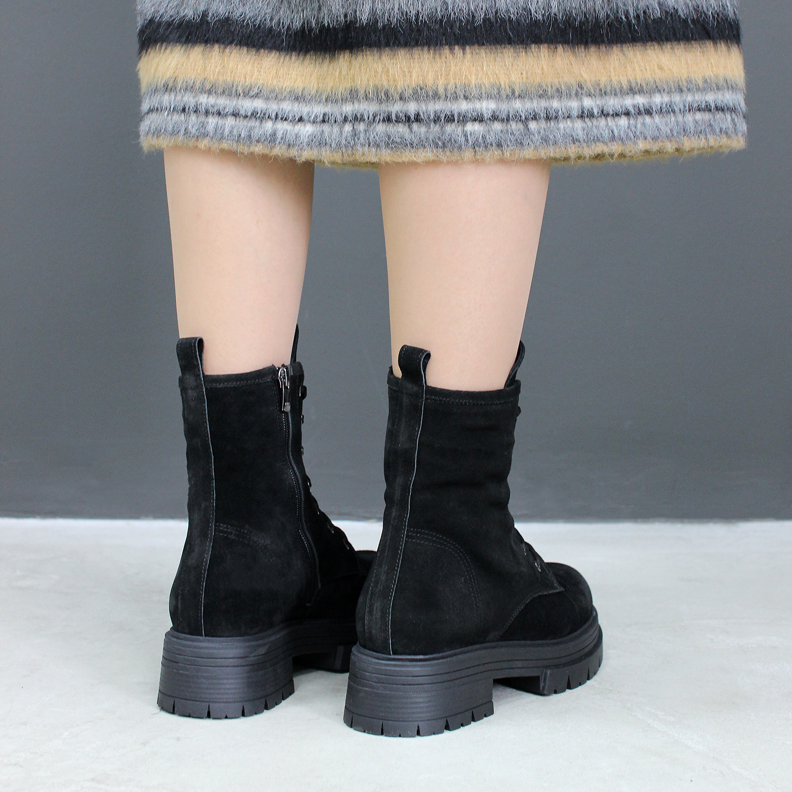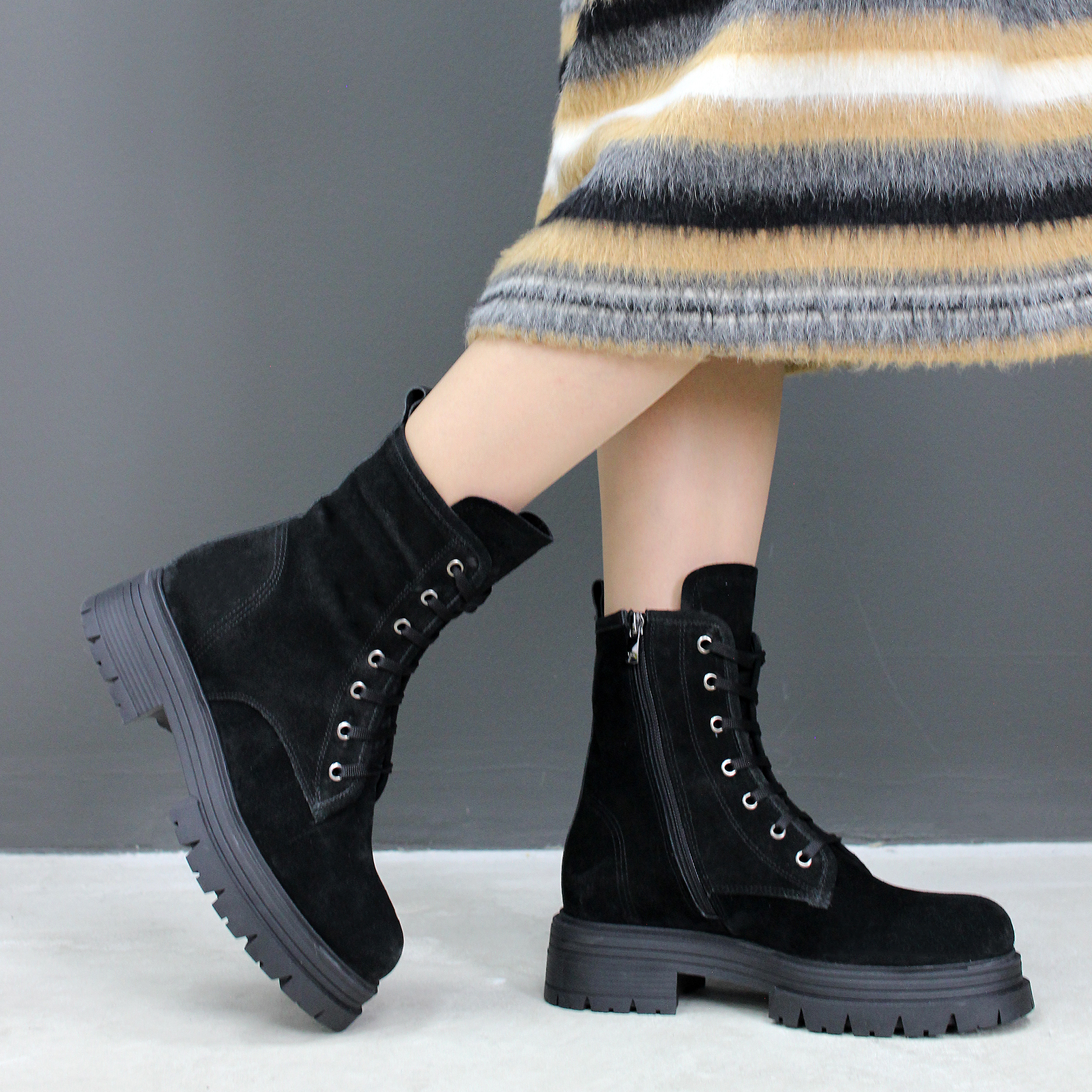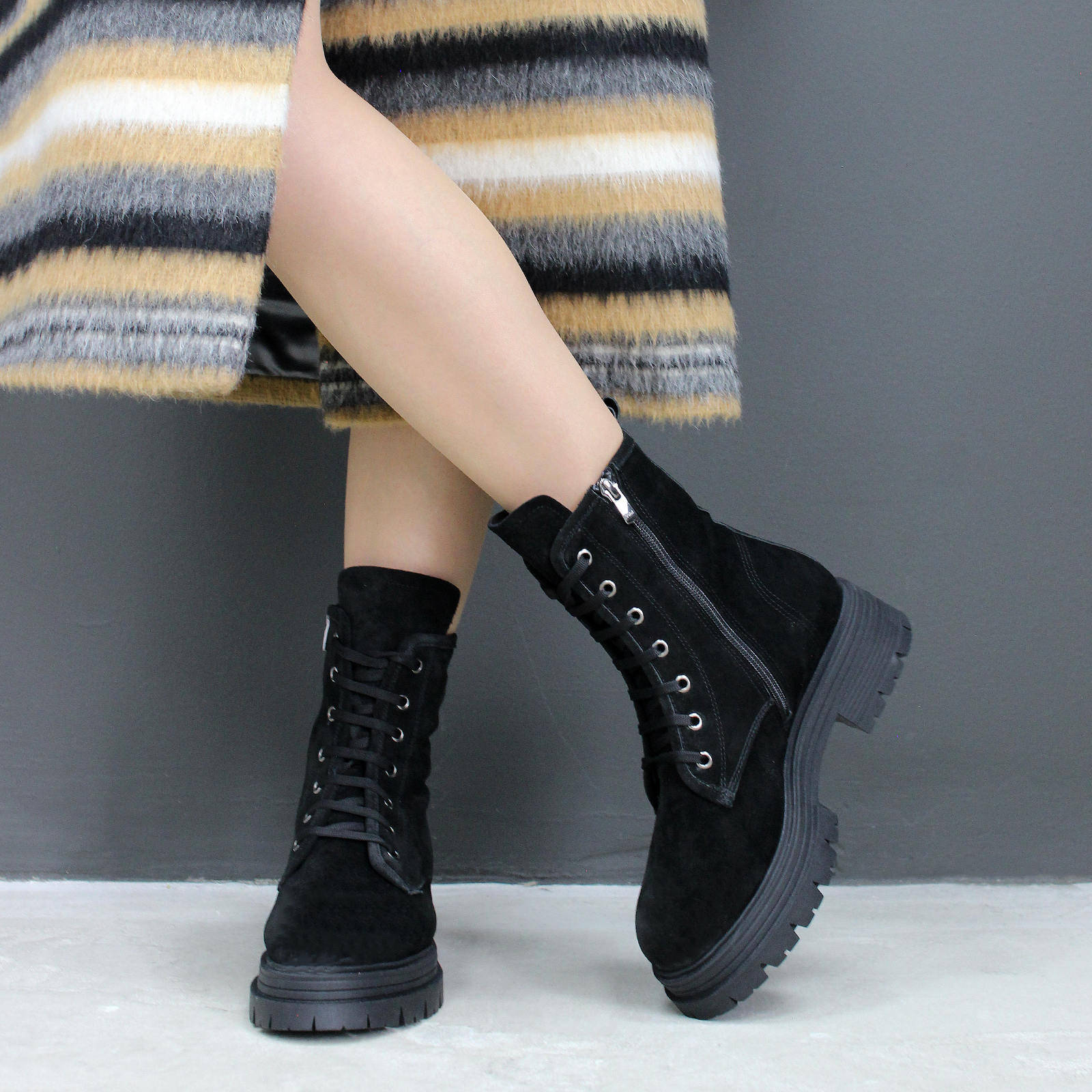 Ботинки BAROCCO 349 5230-KA черный мех из натуральной замши черного цвета - идеальный выбор для стильных женщин. Их ключевая особенность заключается в застёжке на молнию с внутренней стороны и шнуровке на подъёме, обеспечивая удобство и оригинальный вид. Высота каблука составляет 5 см, а материал подошвы - полимер (ТЭП). Внутри ботинок используется натуральный мех, а верх изготовлен из высококачественной натуральной замши.