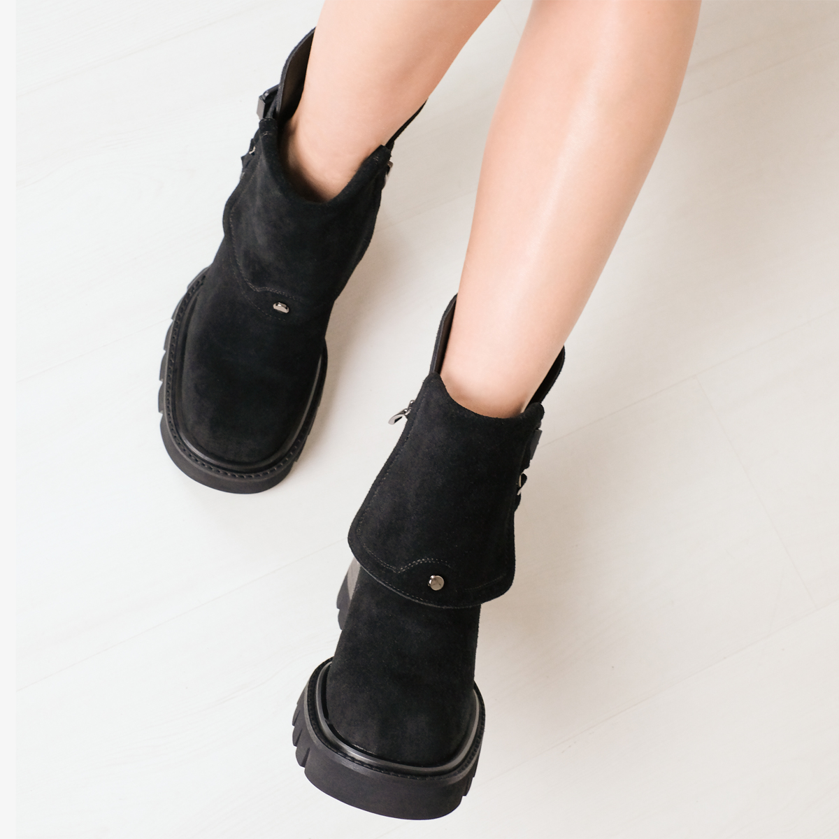 - Верх ботинок изготовлен из качественной натуральной замши.