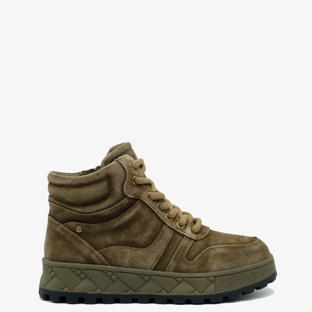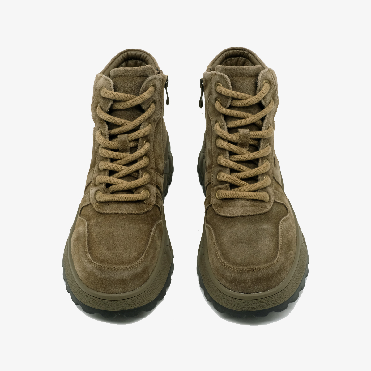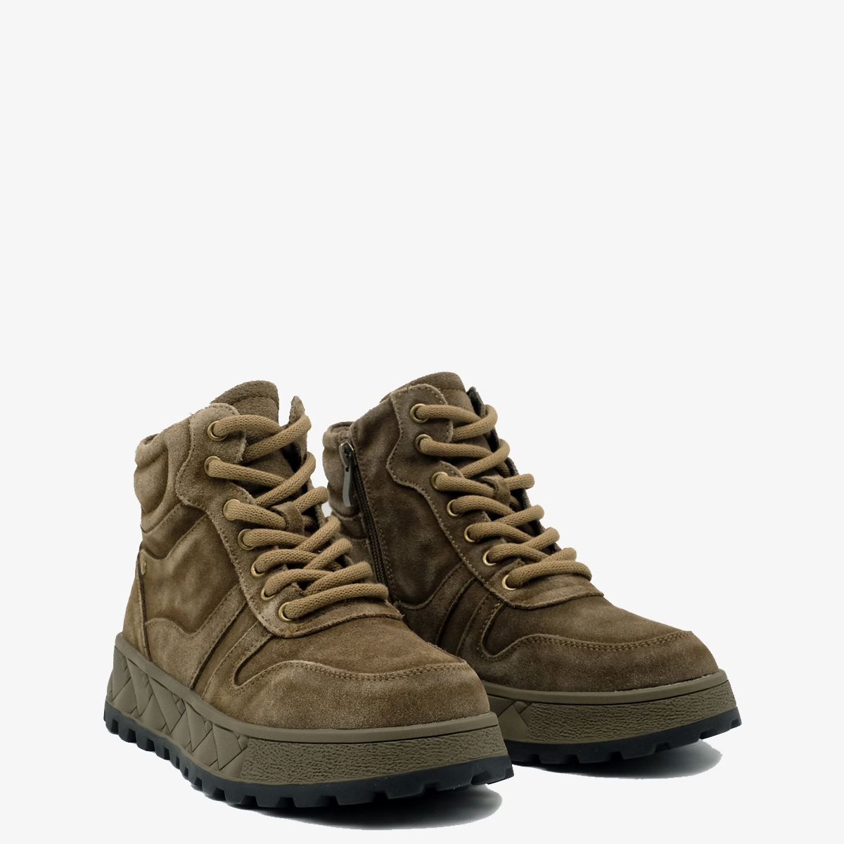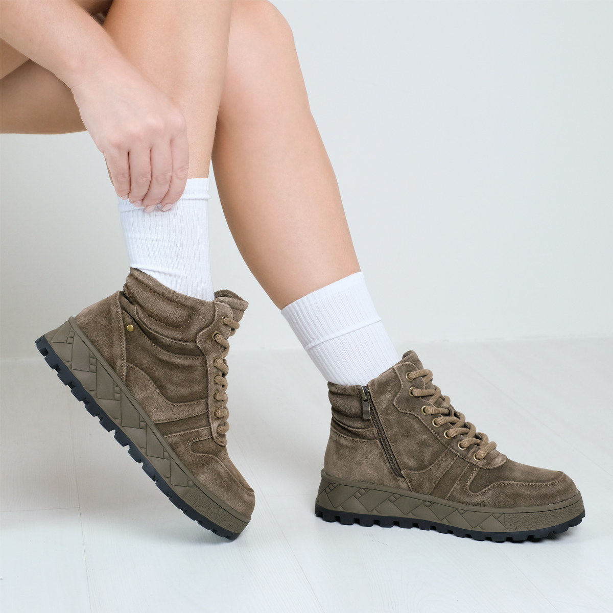 Ботинки 9748, выполенные из натуральной замши зеленого цвета, — идеальный выбор для стильных и активных людей. Эти ботинки обладают комфортной высотой платформы и закругленным мысом, что обеспечивает удобство при длительной носке. Молния с внутренней стороны и шнуровка на подъеме делают их легкими в использовании и обеспечивают надежную фиксацию. Уникальный дизайн подошвы оформлен под "плетение", добавляя оригинальности.