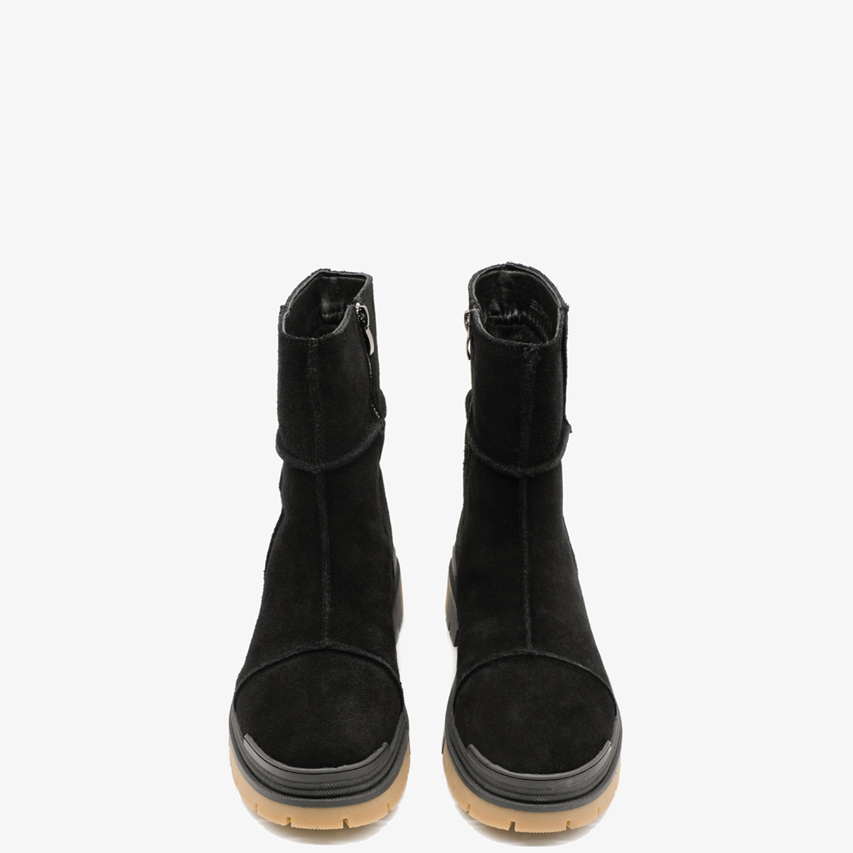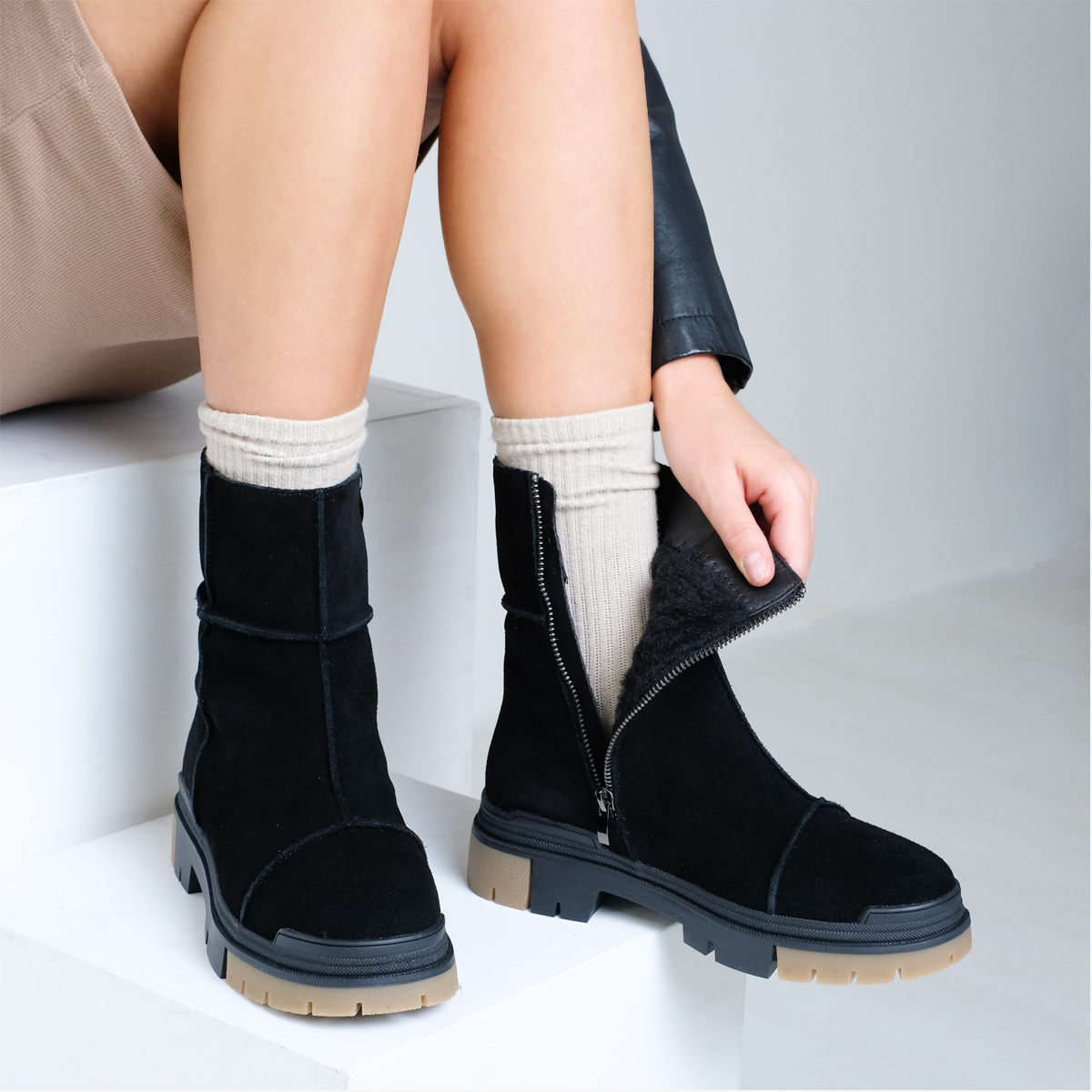 Ботинки 9915 черного цвета из натуральной замши — стильный и комфортный выбор для женщин, которые ценят качество и элегантность. Эти ботинки с широким каблуком и закругленным мысом обеспечивают отличную устойчивость и поддержку, что делает их идеальными для длительной носки и активного дня. Молния с внутренней стороны обеспечивает легкость в обувании и снятии.