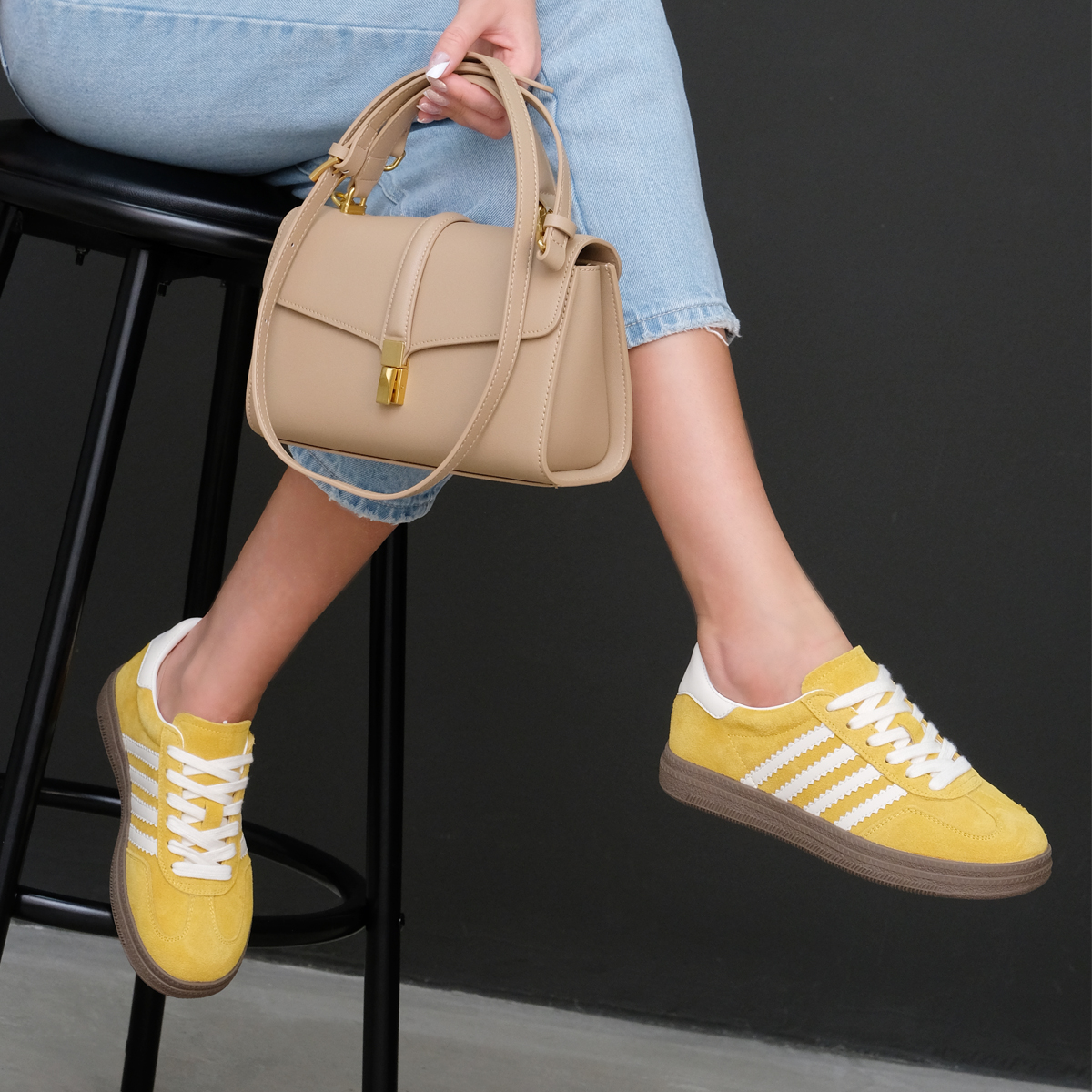 Желтые кеды 10087 выполнены из натуральной замши, что придает им стильный и элегантный вид. Комфортная высота платформы, закругленный мыс и шнуровка на подъеме обеспечивают отличную поддержку и удобство при носке.