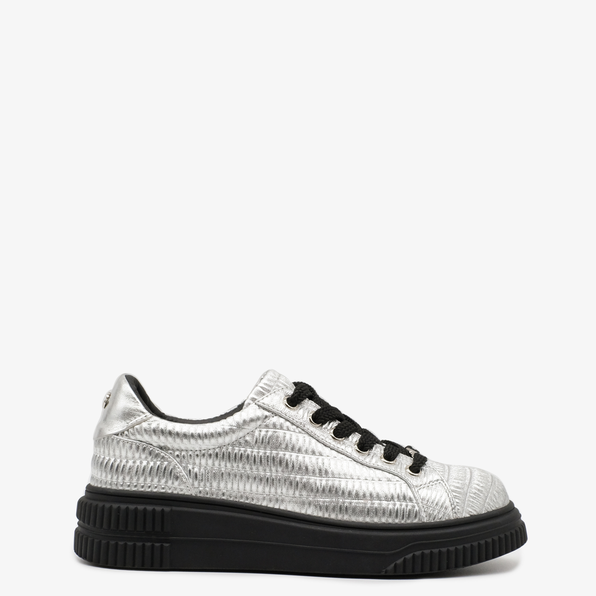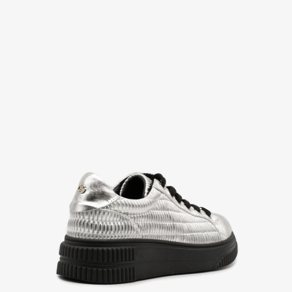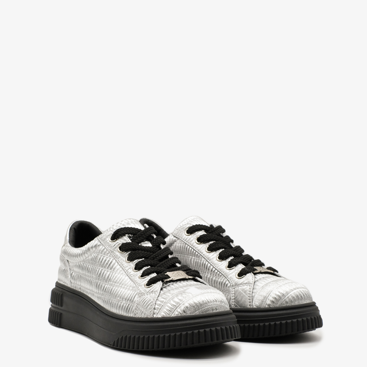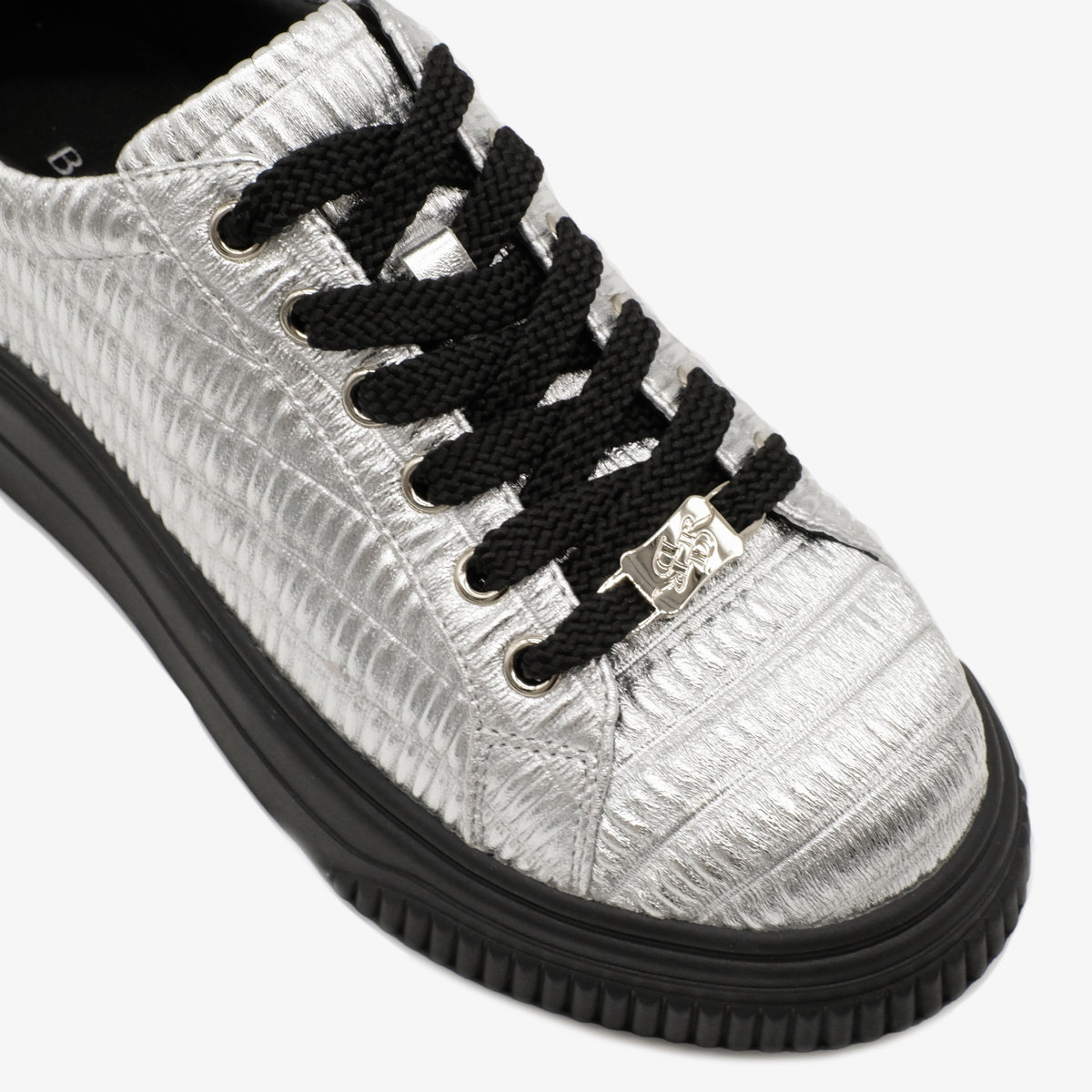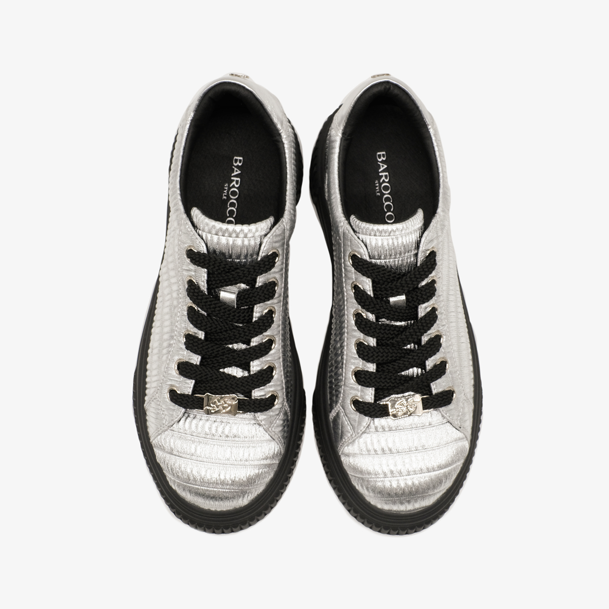 Кеды 10124 серебряного цвета выполнены из натуральной кожи, что обеспечивает их долговечность и стильный внешний вид. Комфортная высота платформы и закругленный мыс делают эти кеды идеальными для повседневной носки. Шнуровка на подъеме позволяет легко регулировать посадку. Верх кед выполнен с эффектом "тиснения", добавляя уникальности и стиля.