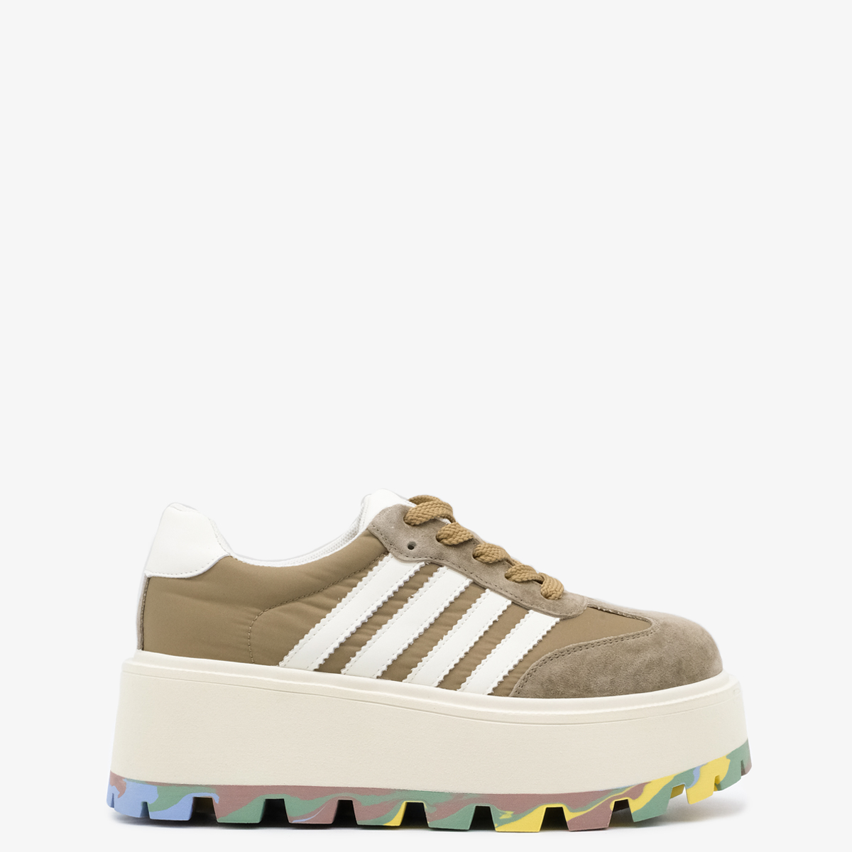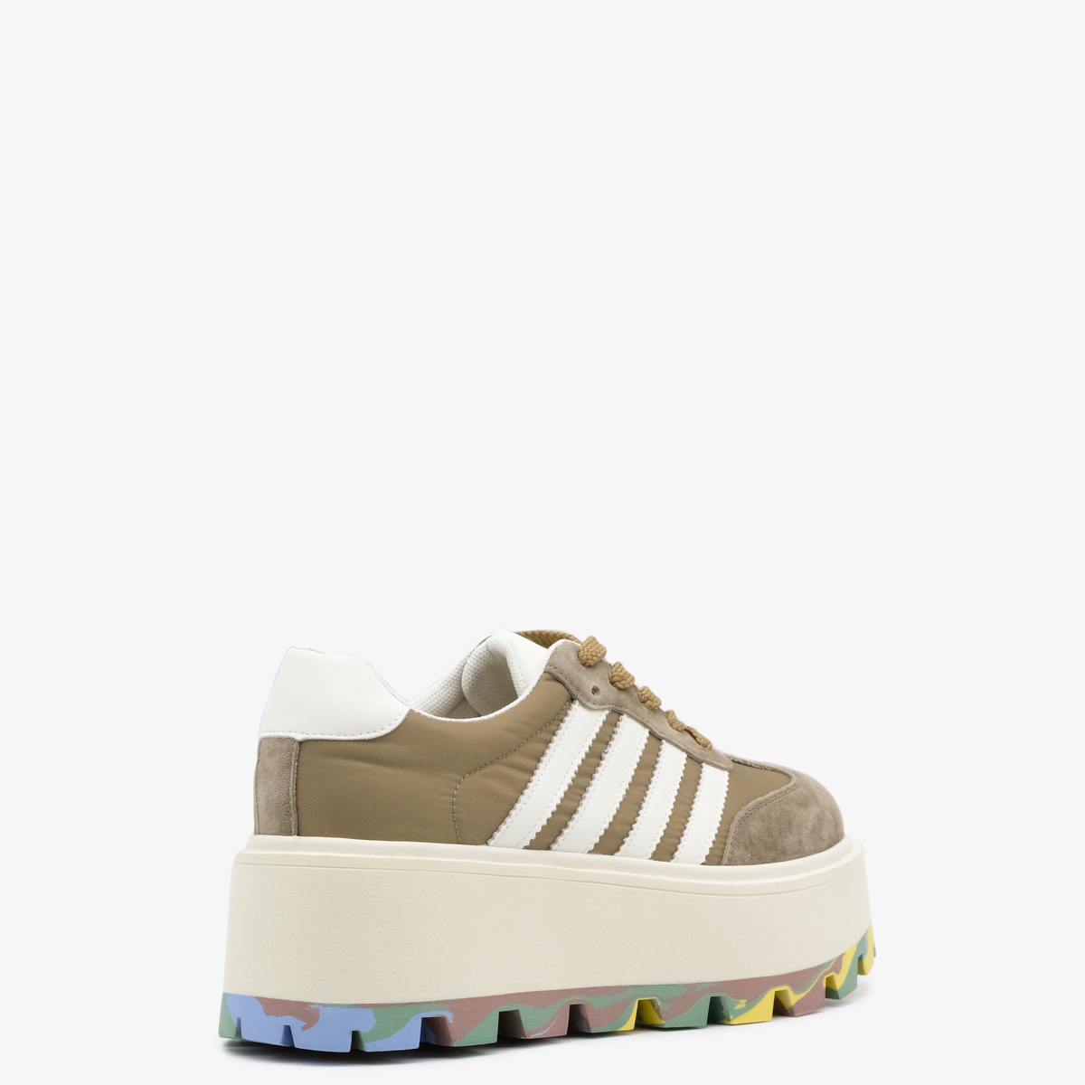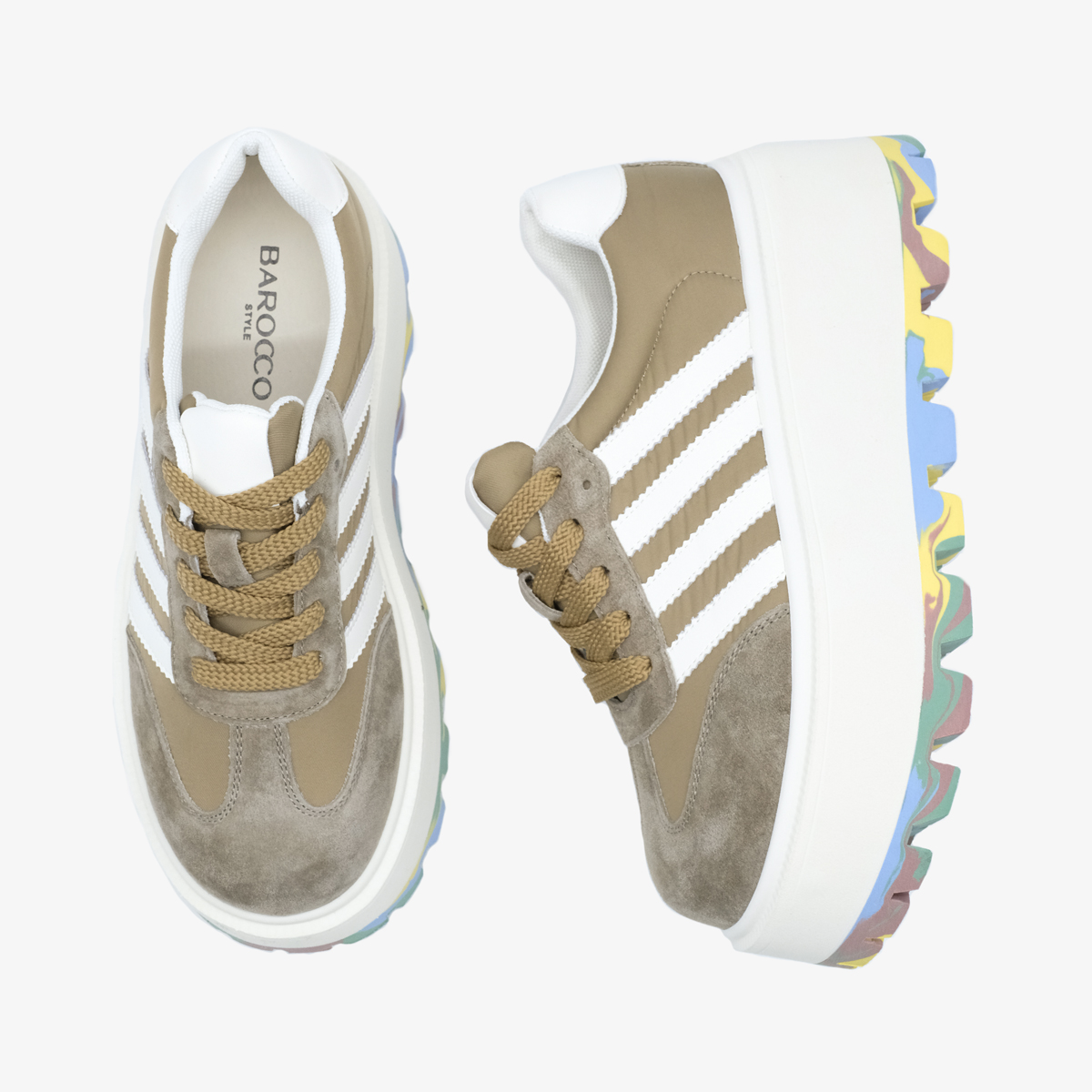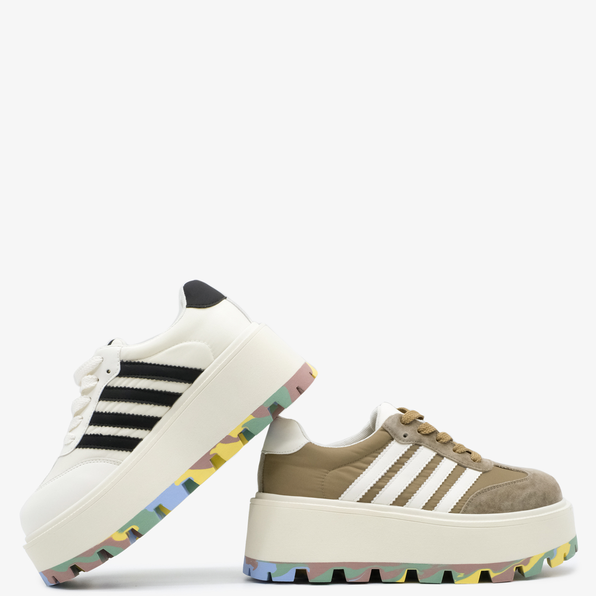 Кеды 10154 цвета хаки выполнены из натуральной кожи и текстиля, что обеспечивает высокое качество и стильный внешний вид. Комфортная высота платформы и закругленный мыс делают эти кеды идеальными для длительной носки, а яркая акцентная подошва добавляет оригинальности и привлекает внимание.