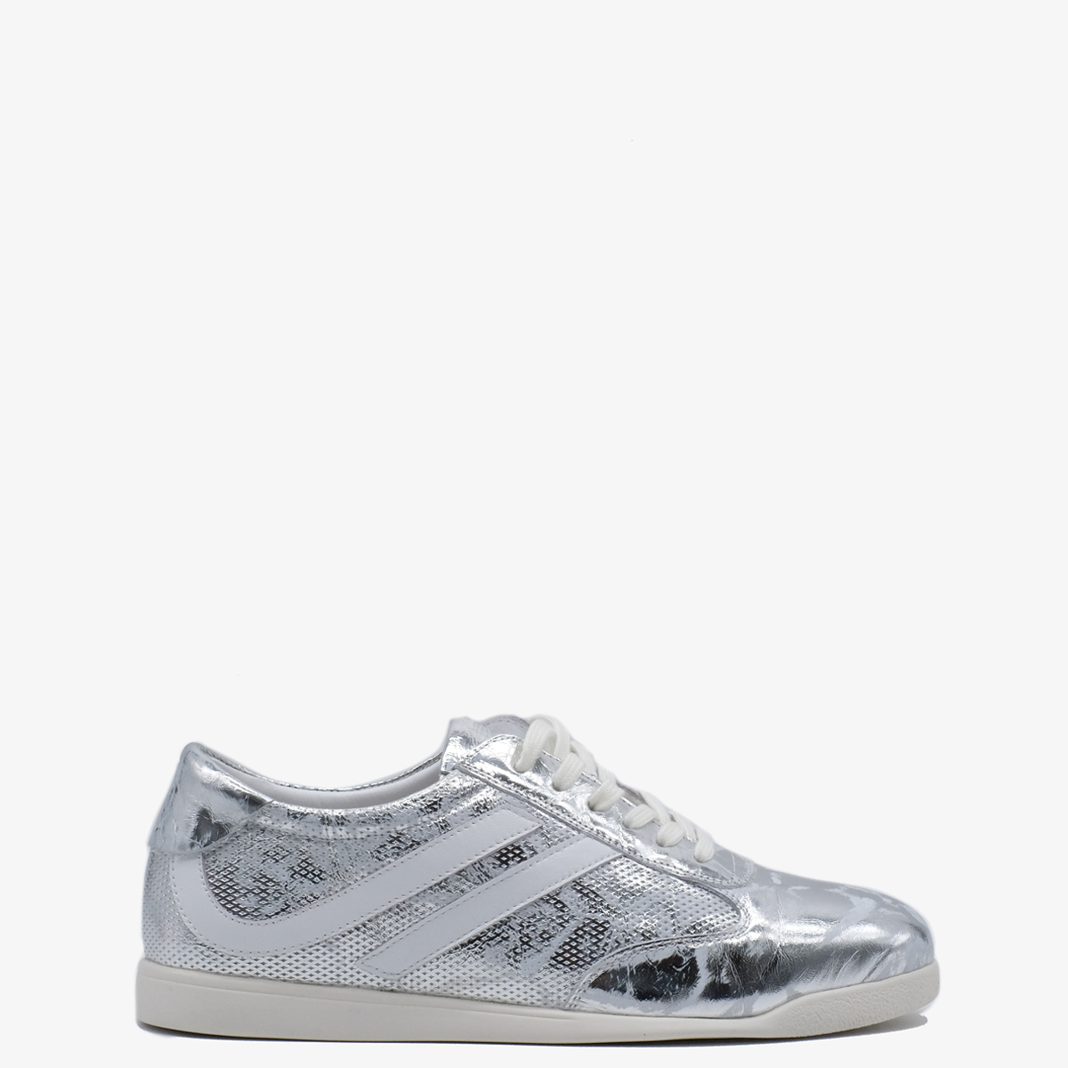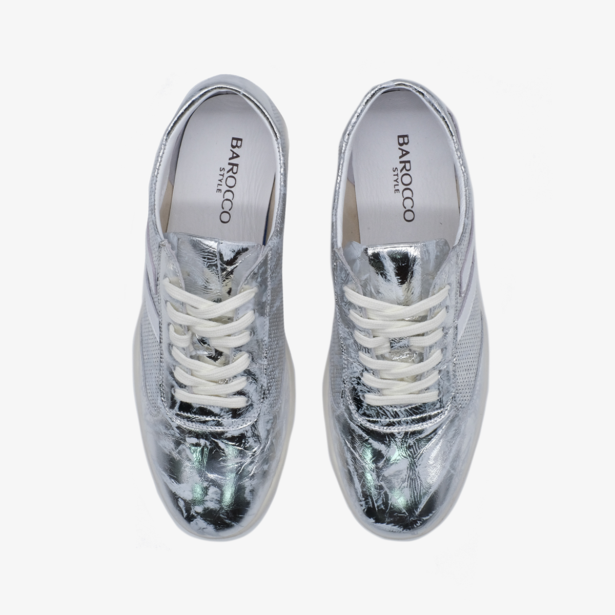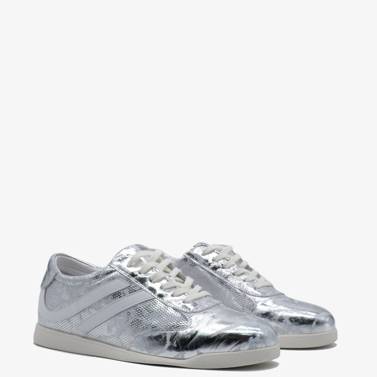 Кеды 10378 серебряного цвета выполнены из натуральной кожи, что делает их легкими и удобными для повседневной носки. Комфортная высота платформы, закругленный мыс и шнуровка на подъеме обеспечивают отличную поддержку стопы, позволяя Вам наслаждаться каждым шагом без усталости.