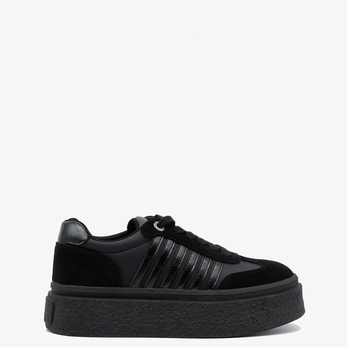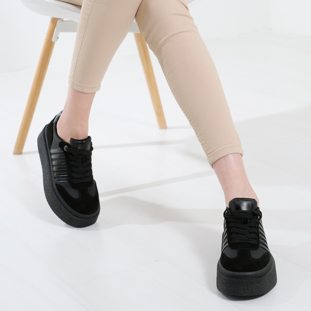 Черные кеды 10726 из натуральной кожи и натуральной замши — это стильная и универсальная обувь, которая обеспечит комфорт в повседневной носке. Эти кеды оснащены комфортной высотой платформы и закругленным мысом, что обеспечивает удобство при длительном ношении. Шнуровка на подъеме позволяет легко регулировать посадку.