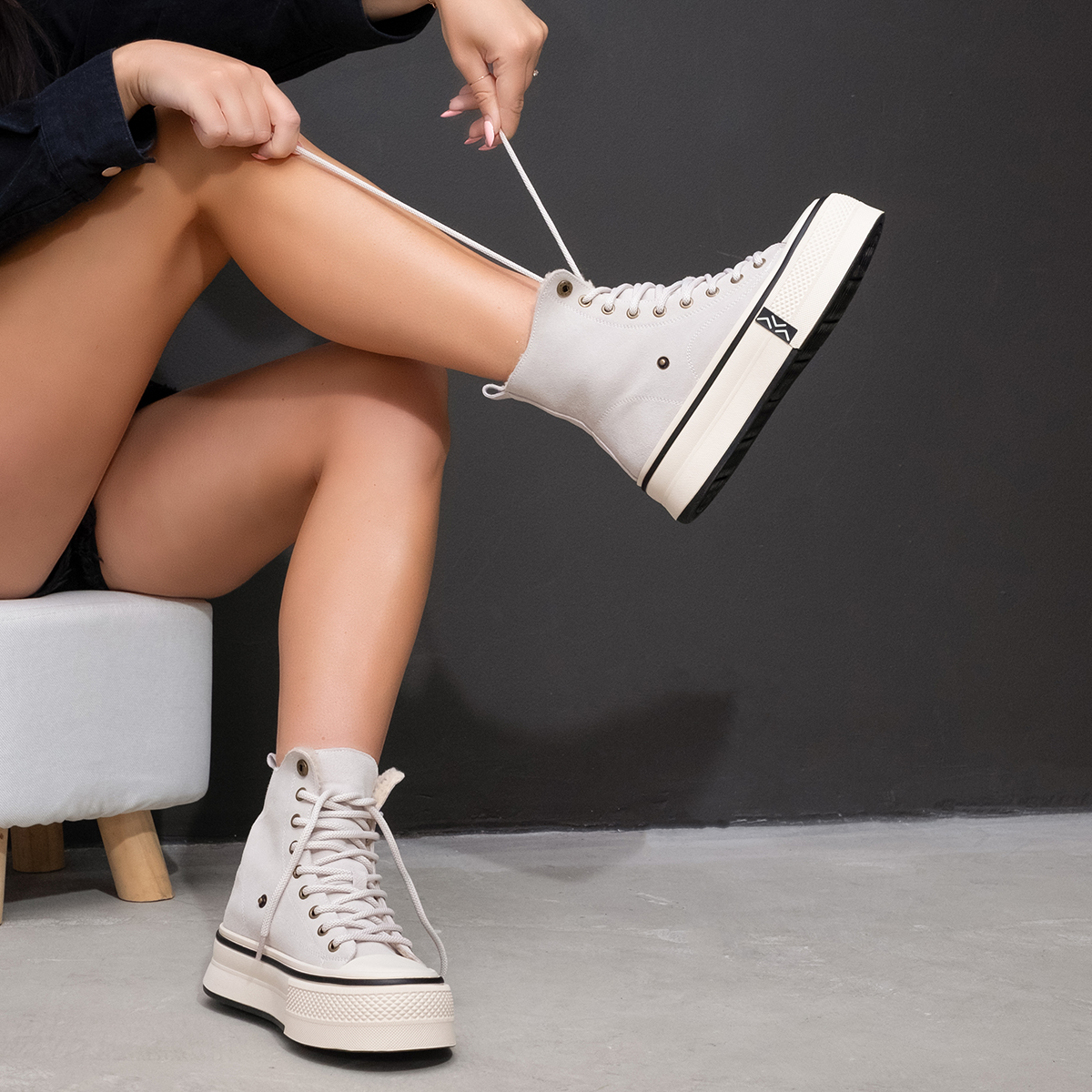 Кеды 9585, выполненные из натуральной замши серо-молочного цвета, станут отличным дополнением к Вашему гардеробу. Эти кеды отличаются комфортной высотой платформы, закругленным мысом, шнуровкой на подъеме и кнопками, позволяющими носить обувь в двух вариантах. Это обеспечивает не только стильный внешний вид, но и удобство при носке на протяжении дня.