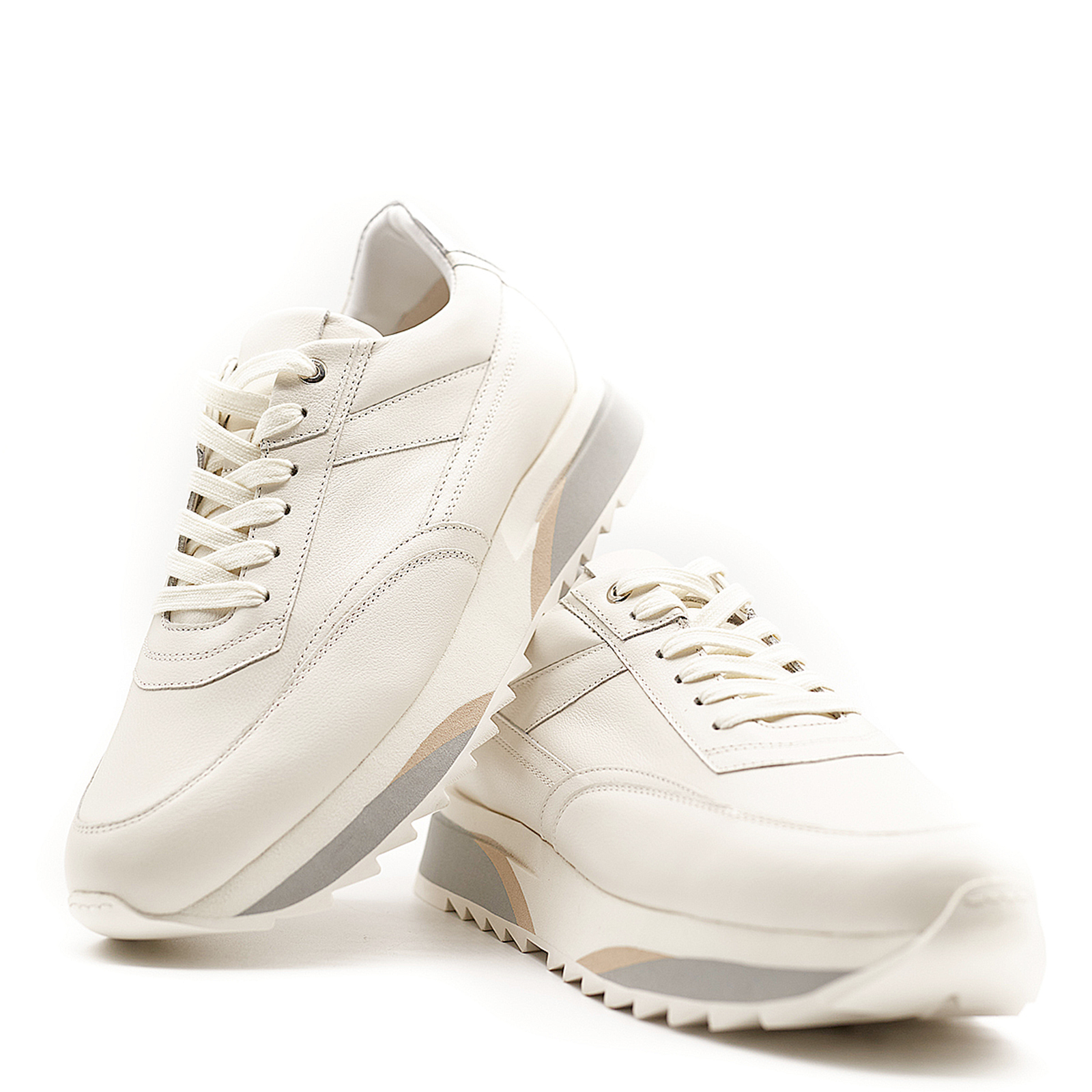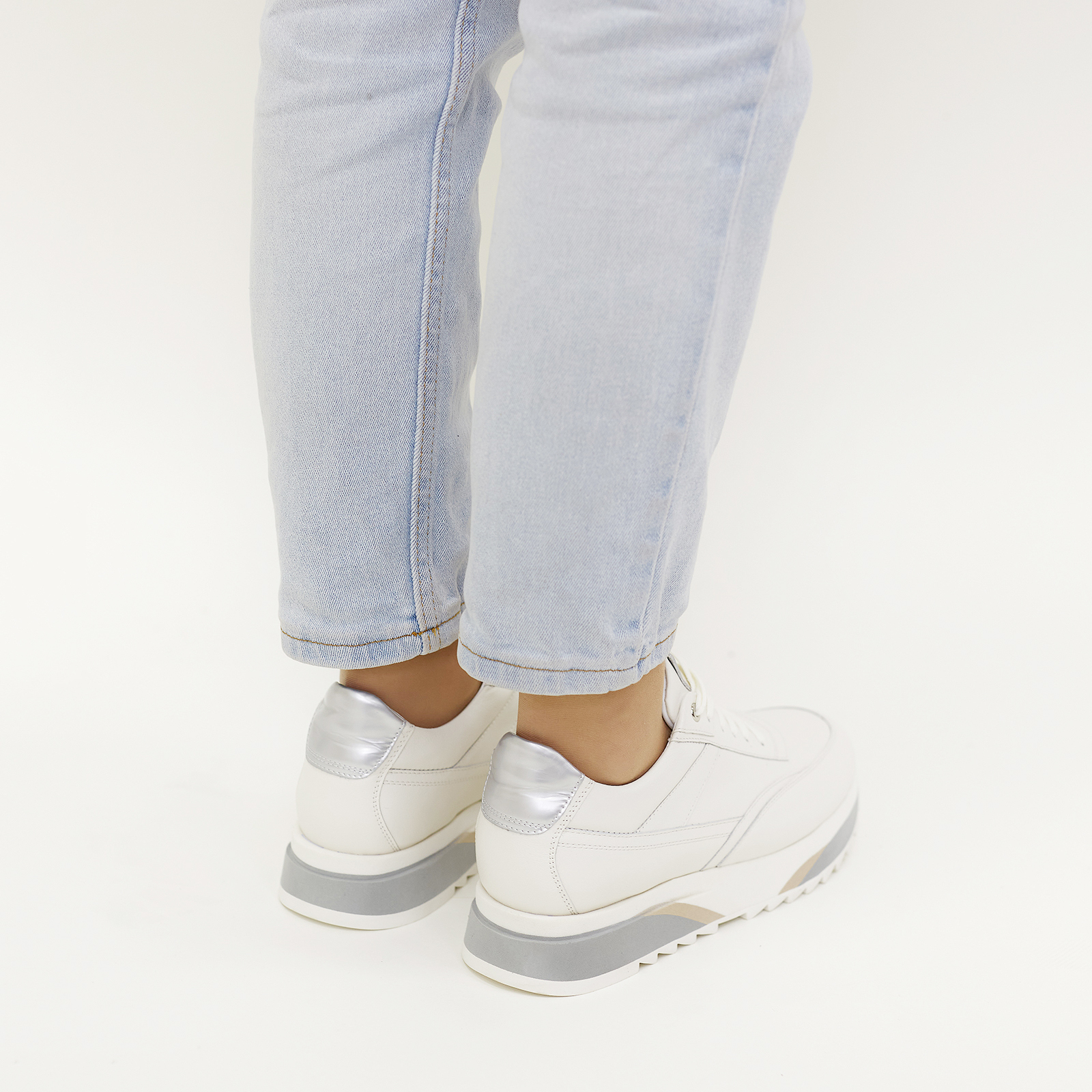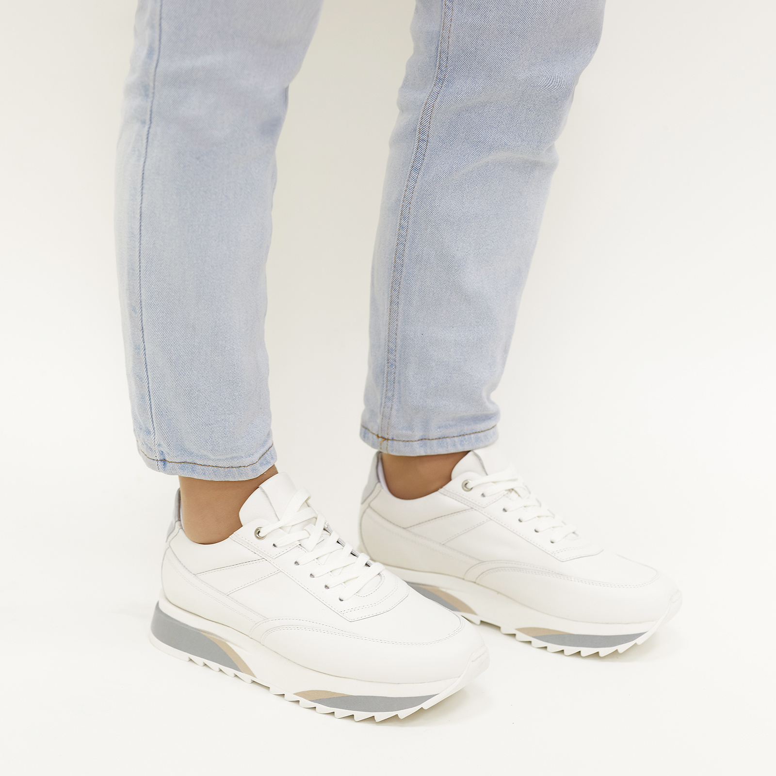 Кроссовки 8850, изготовленные из качественной натуральной кожи молочного цвета, радуют актуальным дизайном и комфортом. Практичная, но при этом изящная пара обуви сумеет дополнить Ваш повседневный образ для работы, прогулки. Отлично смотрятся кроссовки и с одеждой спортивного стиля. Прочные материалы гармонично сочетаются с другими элементами кроссовок: шнуровка на подъёме, комфортная высота подошвы. Внутренний материал (натуральная кожа) делает кроссовки стойкими к износу и позволяет им долго сохранять аккуратный внешний вид. Удобство и красоту кроссовок 8850 Вы оцените сразу, как только примерите их.