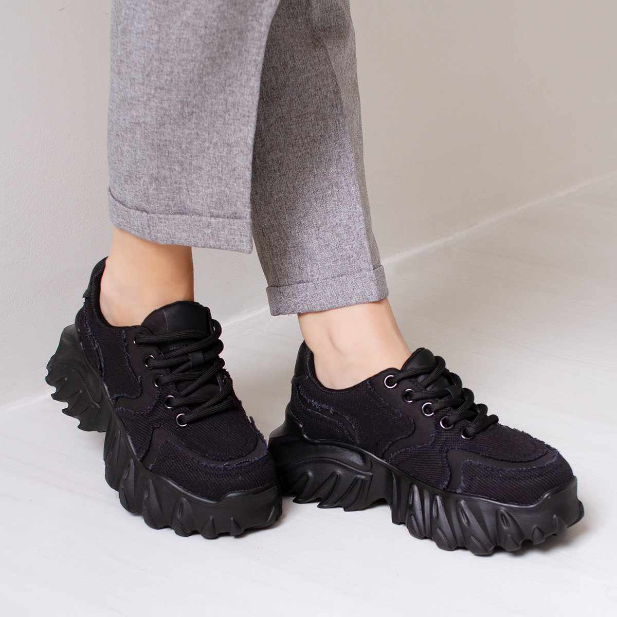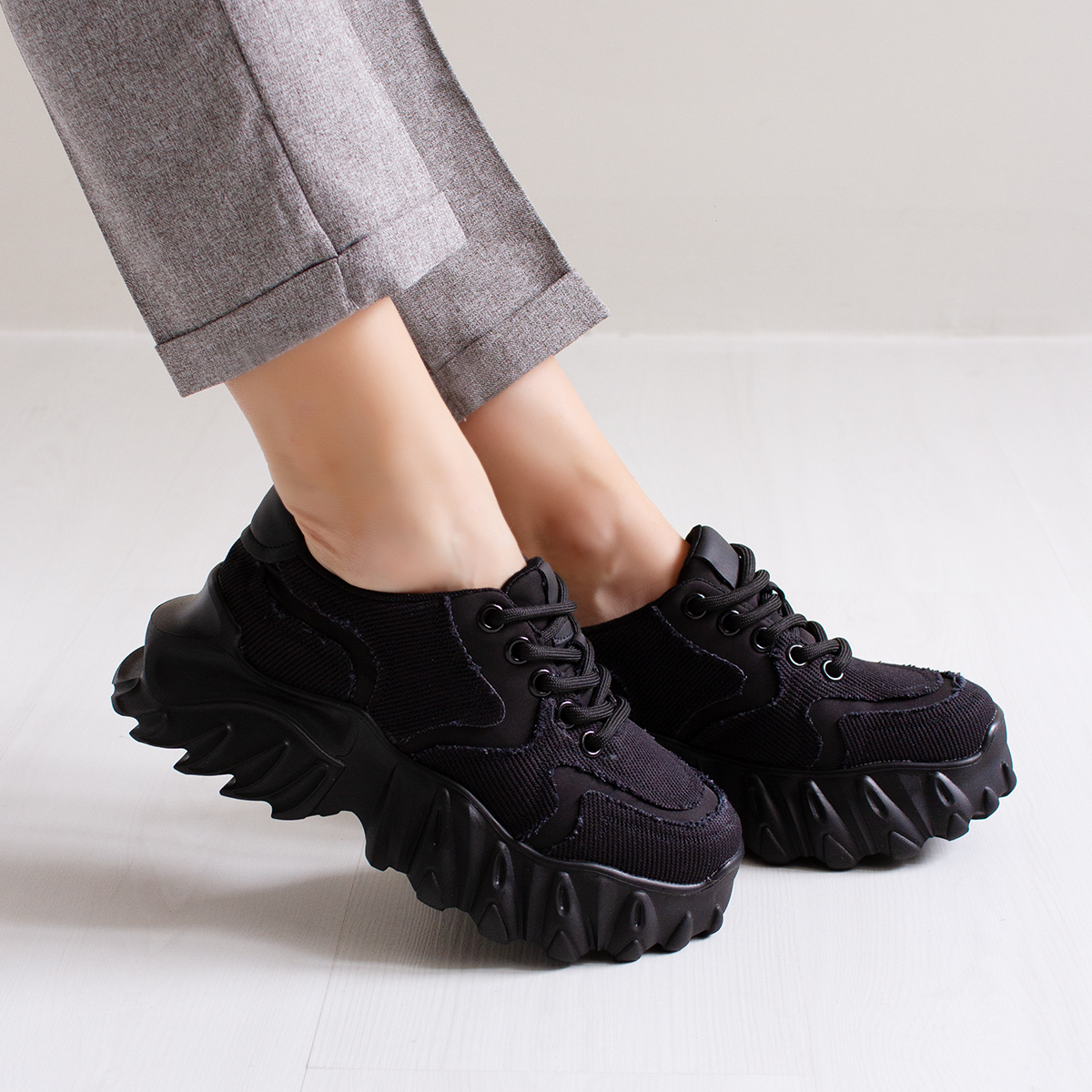 Стильные черные текстильные кроссовки 9058, созданные с учетом комфорта и стиля. Эти кроссовки с удобной шнуровкой и фигурной подошвой уникального дизайна сочетают в себе функциональность и модную привлекательность.