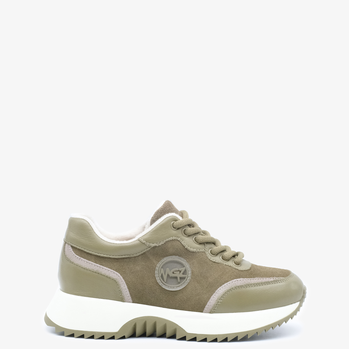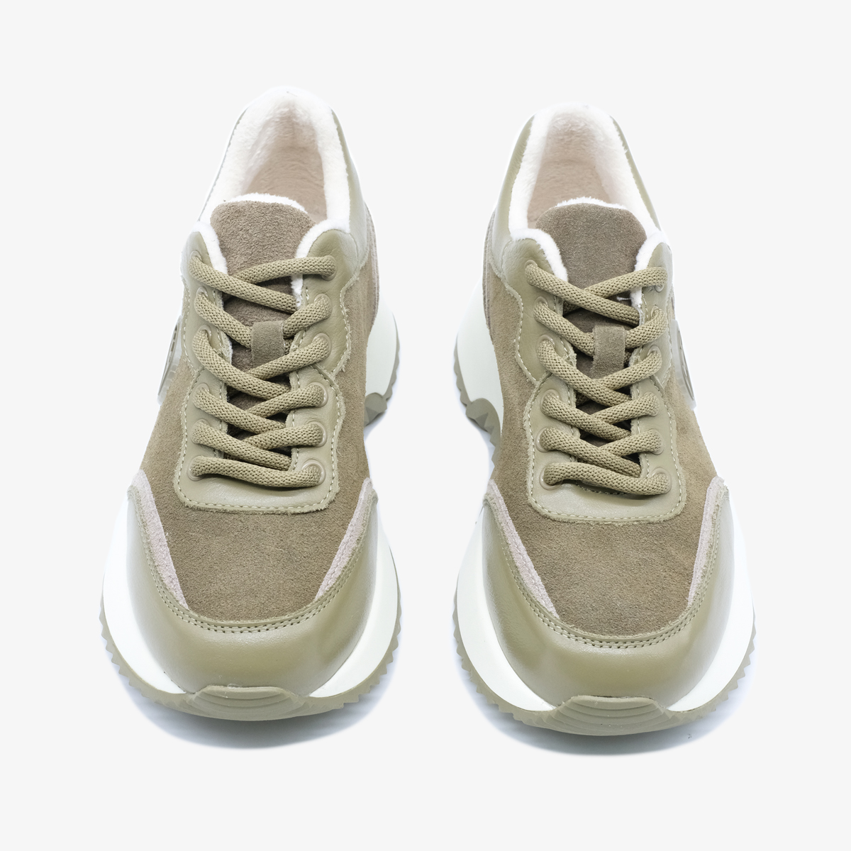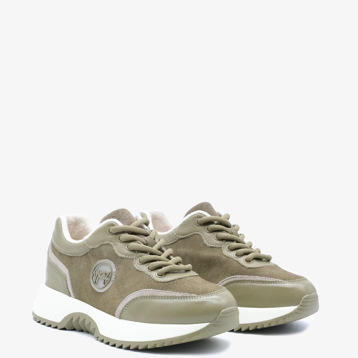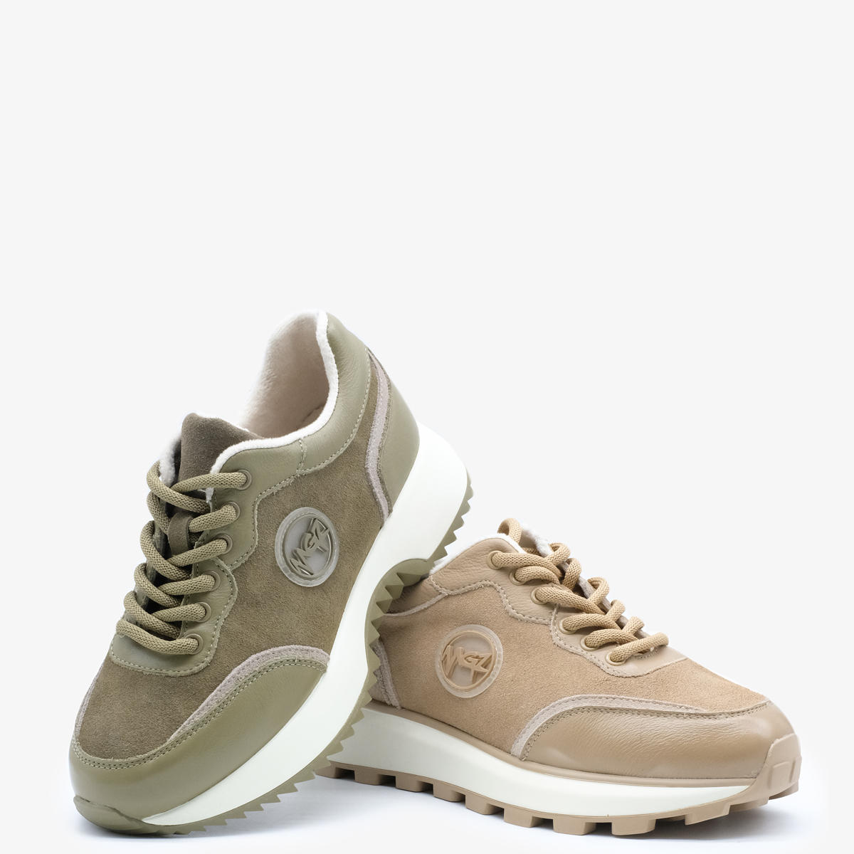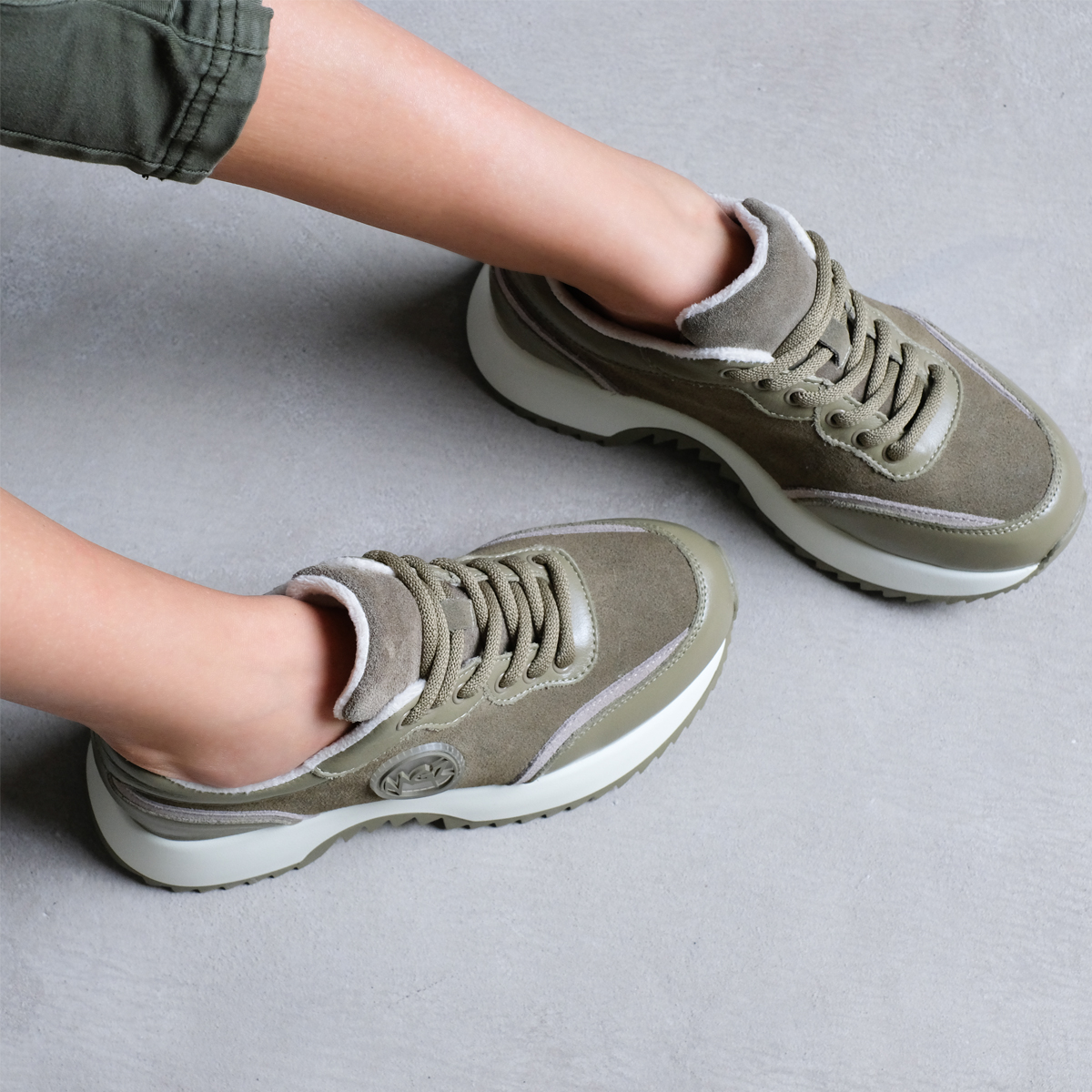 - Верх кроссовок сочетает в себе натуральную кожу и натуральную замшу.