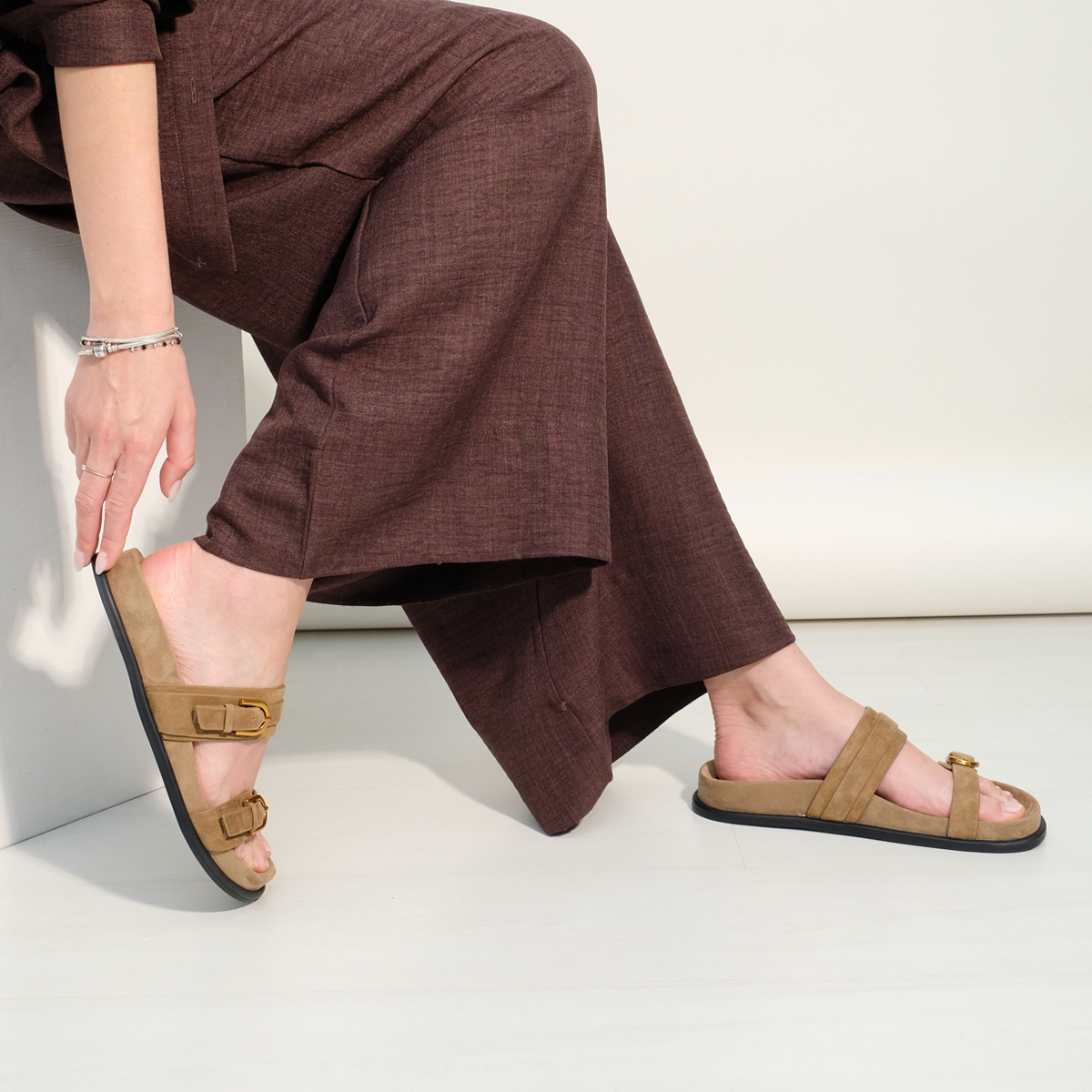 Сабо 10714 коричневого цвета, выполненные из натуральной замши, идеально подходят для создания элегантного и комфортного образа. Эти сабо имеют комфортную высоту платформы и закругленный открытый мыс, что обеспечивает удобство при ходьбе и позволяет носить их в течение всего дня без усталости. Широкие ремешки с пряжками для удобной фиксации на ноге.