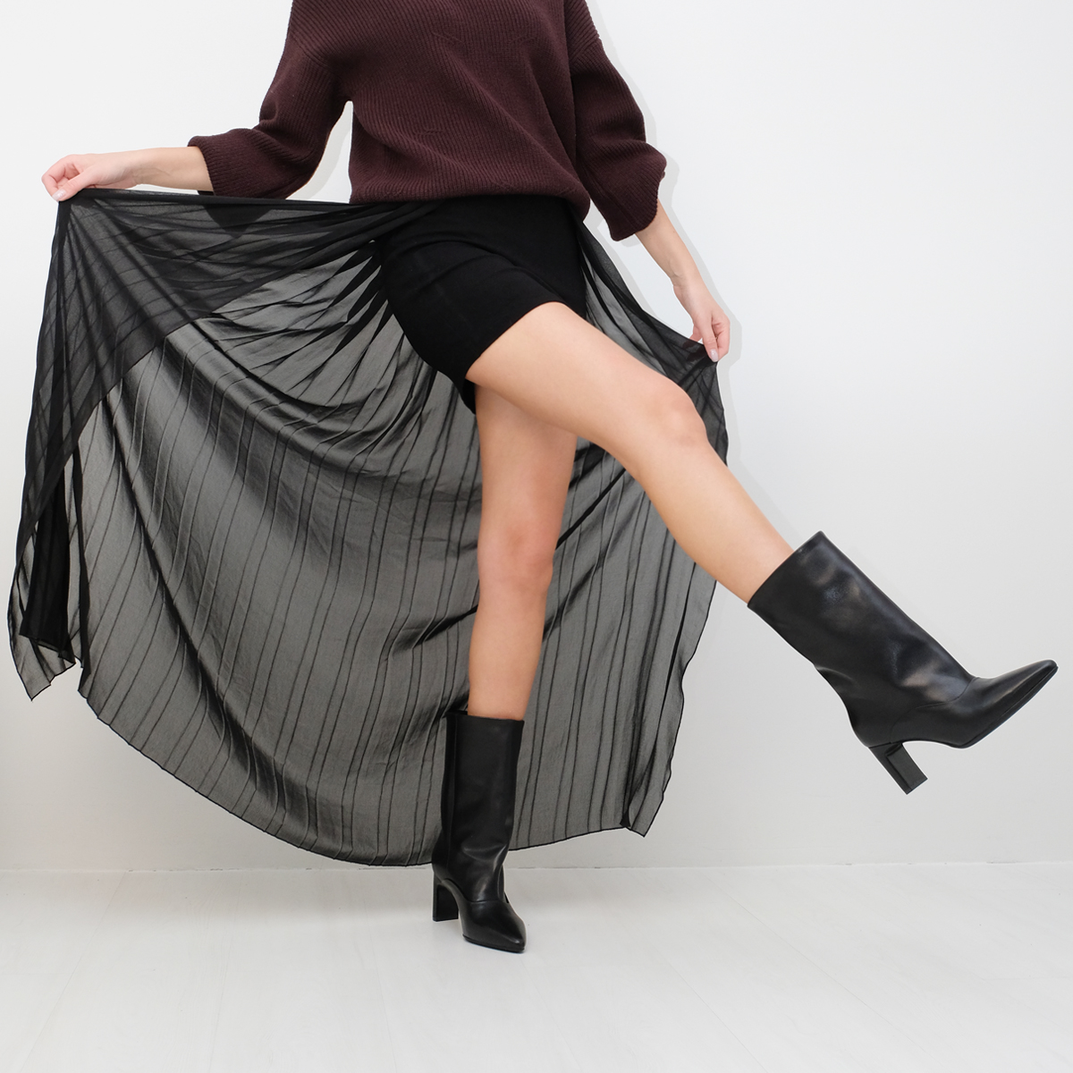 Сапоги 10174 выполнены из натуральной кожи черного цвета, что придаёт им элегантный и роскошный вид. Сапоги оснащены устойчивым прямоугольным каблуком (каблук обтянут натуральной кожей) и острым мысом, что не только обеспечивает комфорт при ходьбе, но и добавляет изысканности Вашему образу. Отсутствие молнии делает их легкими в использовании.
