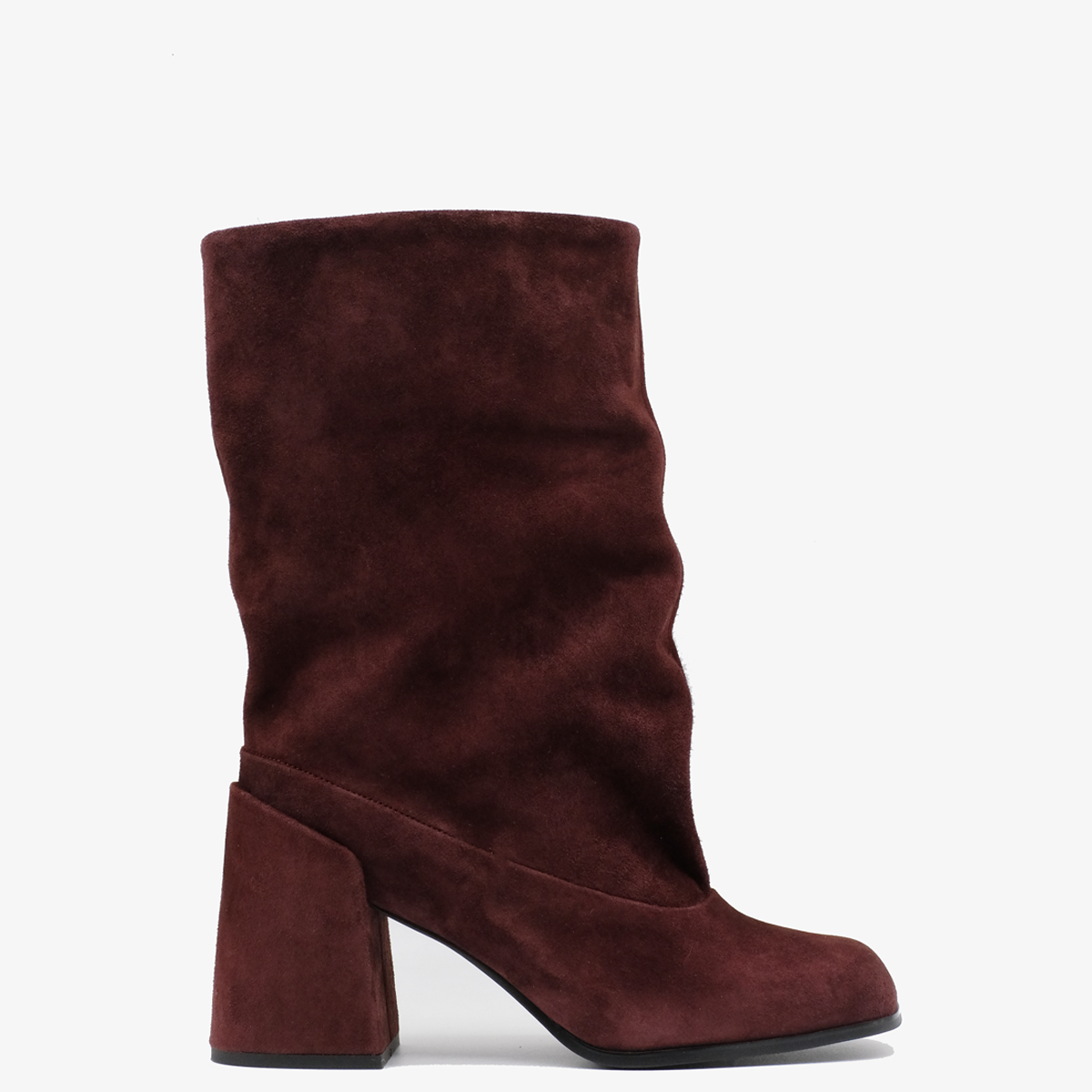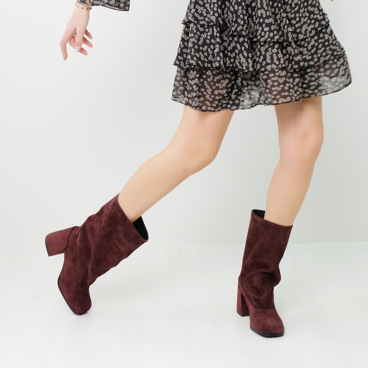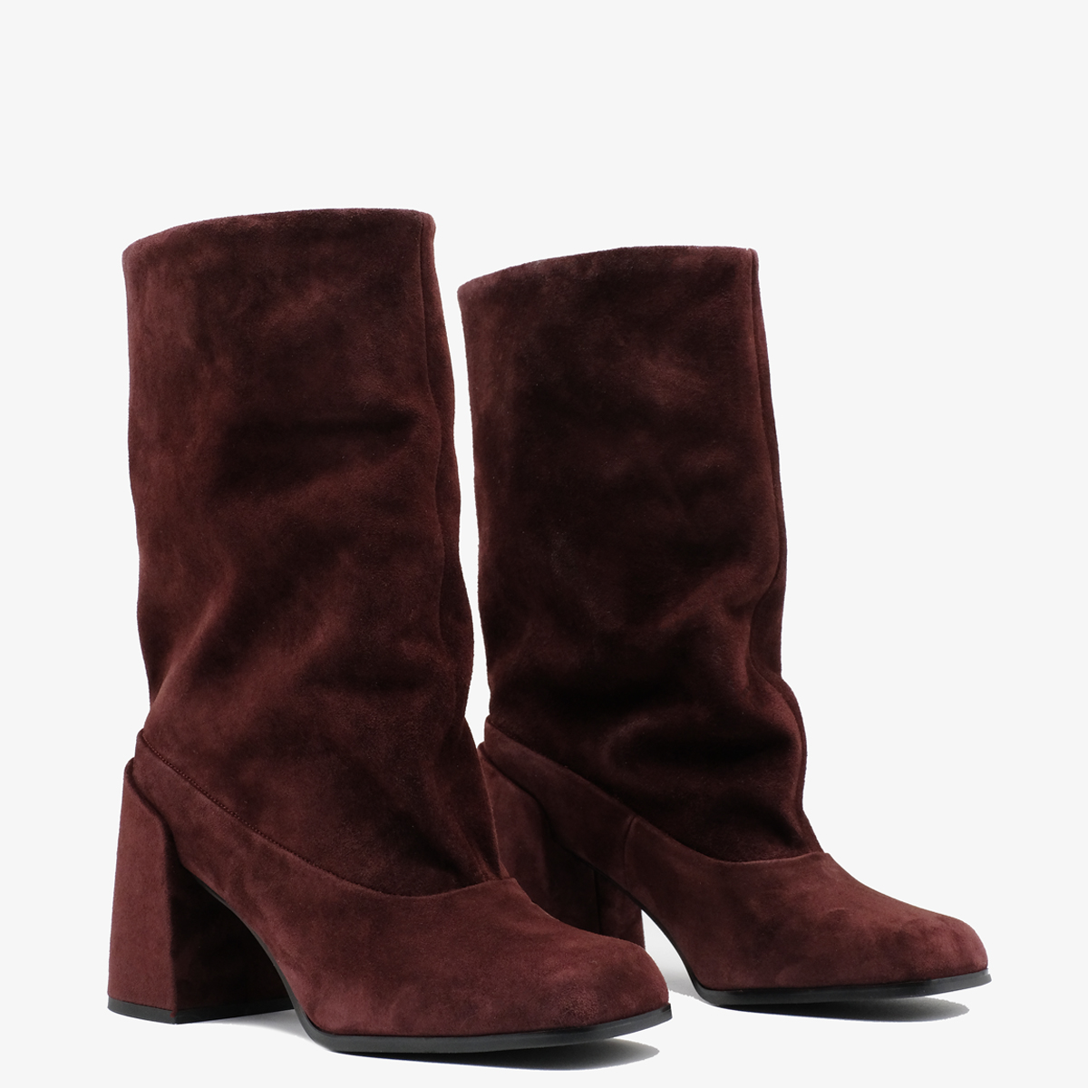 Сапоги 10232 выполнены из натуральной замши бордового цвета, что обеспечивает долговечность и элегантный внешний вид. Устойчивый каблук (каблук обтянут натуральной замшей) и квадратный мыс делают эти сапоги идеальными для повседневной носки. Широкое голенище со сборкой позволяет легко надевать и снимать обувь, придавая ей стильный вид.