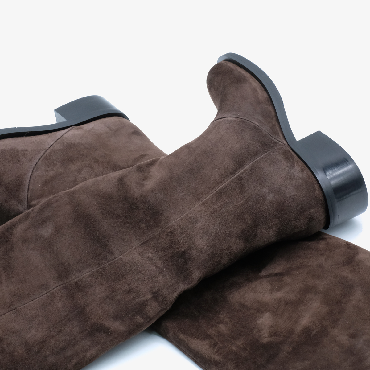 Сапоги 10981 коричневого цвета выполнены из натуральной замши, что придает им роскошный и элегантный вид. Ключевая особенность этих сапог — широкий каблук и закругленный мыс, что обеспечивает комфорт и стабильность при ходьбе. Минималистичный дизайн делает их универсальными для любого гардероба.