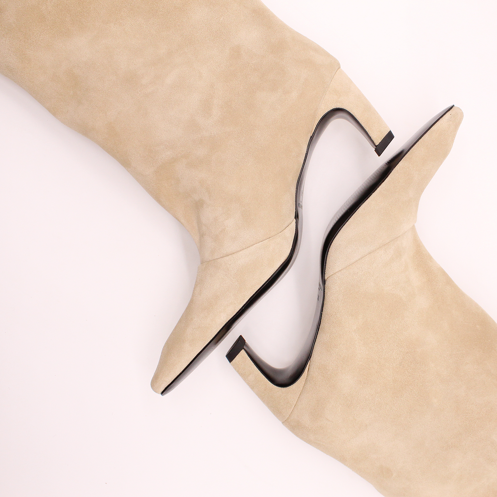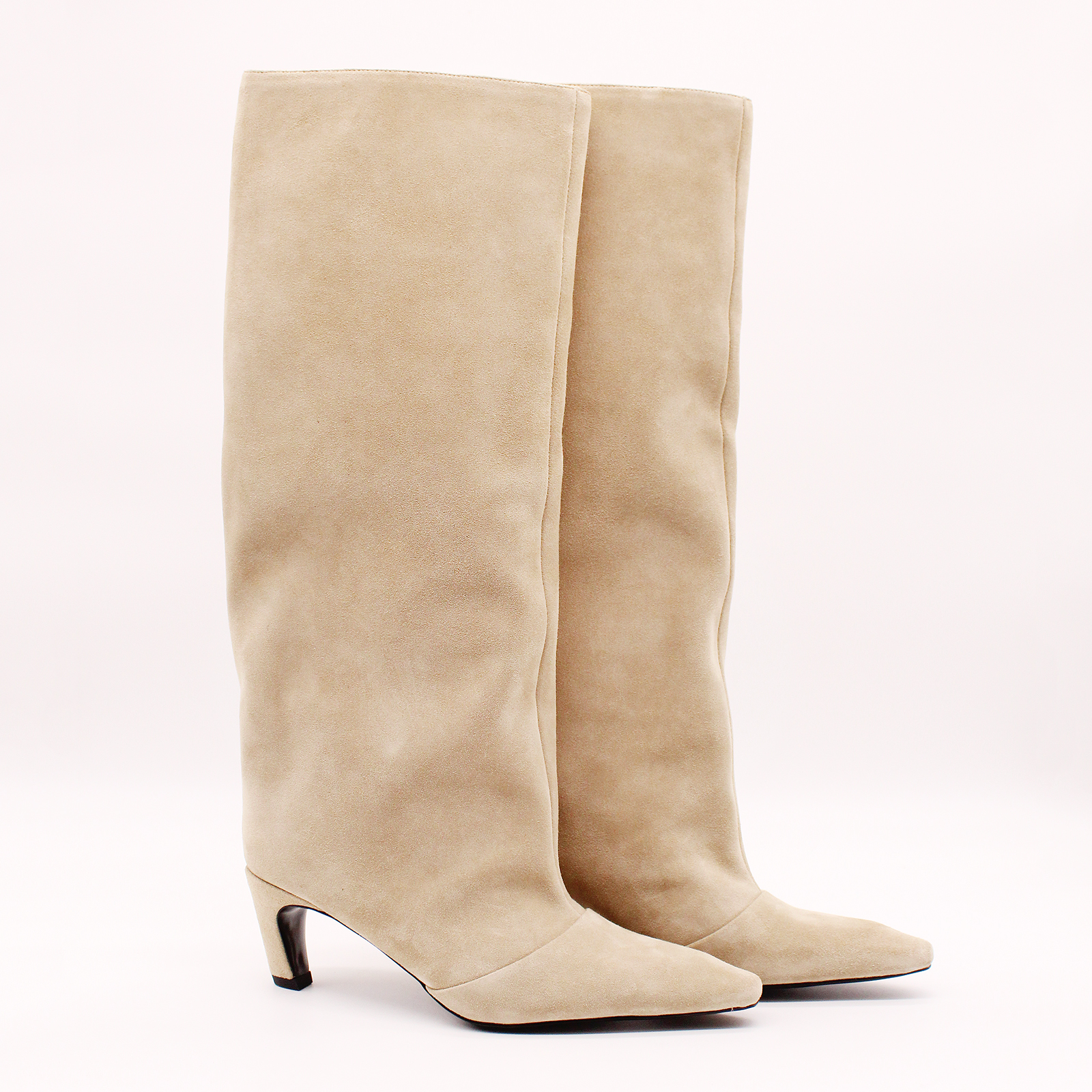 Сапоги 8973 из натуральной замши бежевого цвета, которые станут незаменимым дополнением в Вашей коллекции обуви. Эти сапоги имеют устойчивый каблук, заостренный носок и каблук, покрытый натуральной замшей, что обеспечивает стиль и комфорт. Без молнии они выглядят гладкими и обтекаемыми.