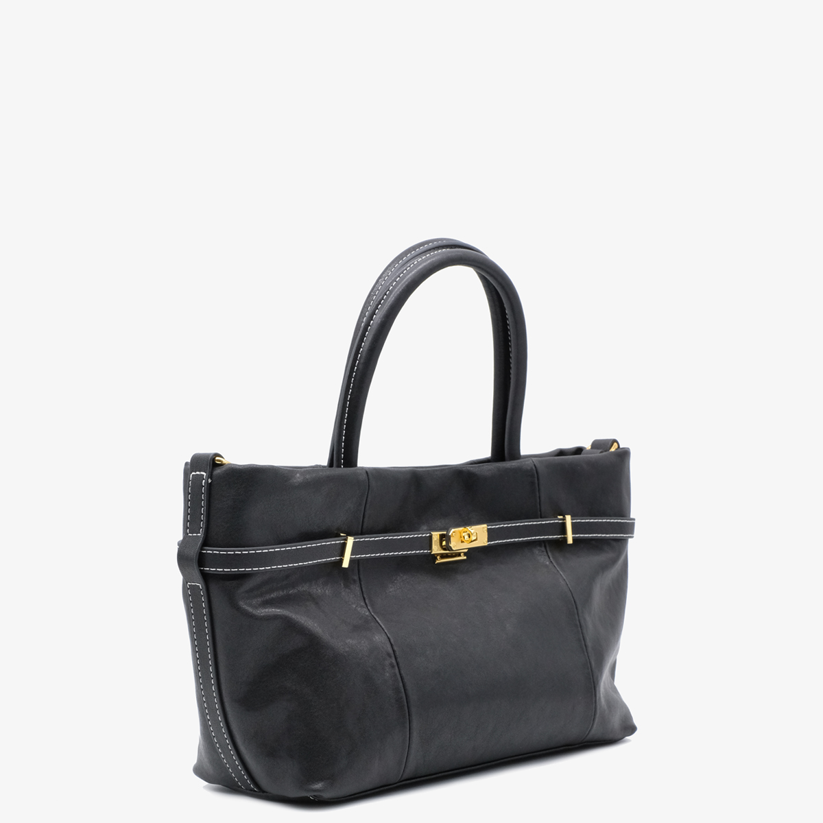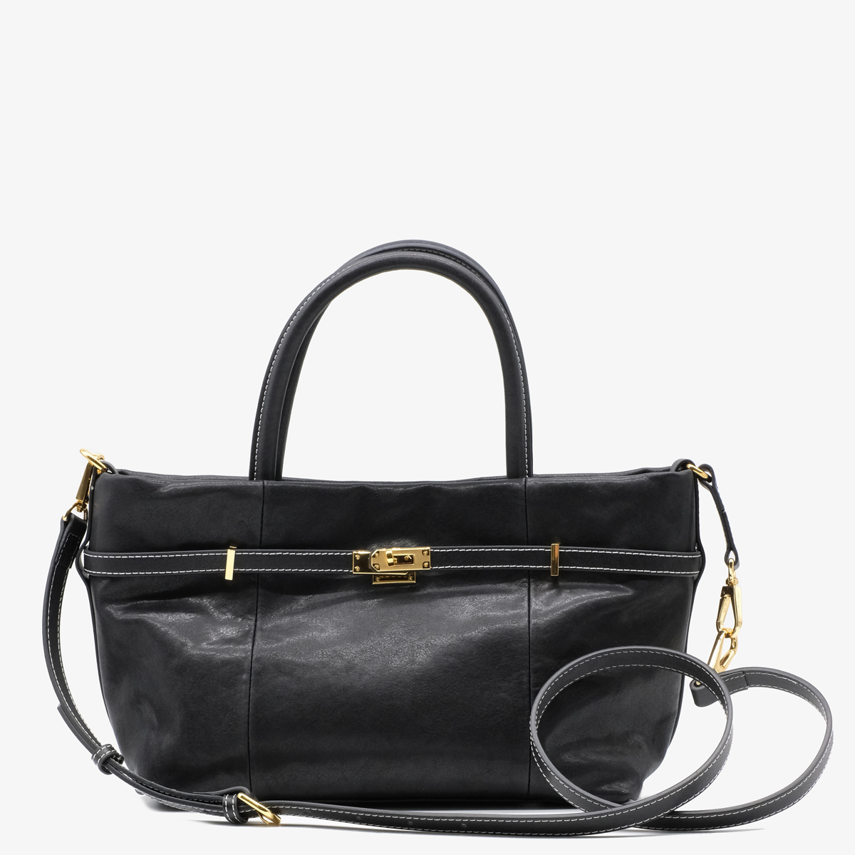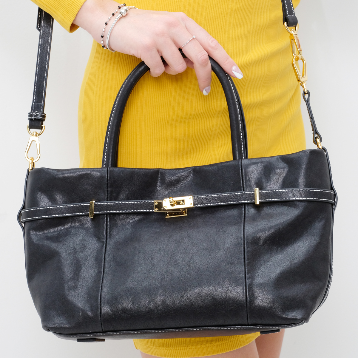 Сумка 10089, изготовленная из натуральной кожи черного цвета, прекрасный выбор для Вашей коллекции стильных сумок. Дизайн данной модели тщательно продуман и реализован (текстильная подкладка; вид застёжки - магнит; декор в виде ремешка с поворотным механизмом; дополнительный регулируемый плечевой ремень). Сумка отлично подойдет под любой Ваш образ и будет неотразимым дополнением к Вашему наряду.