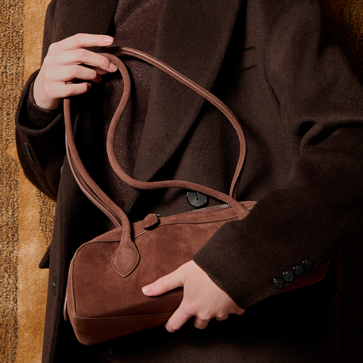 Сумка 10930, изготовленная из натуральной замши коричневого цвета, - прекрасный выбор для Вашей коллекции стильных сумок. Дизайн данной модели тщательно продуман и реализован (текстильная подкладка, вид застёжки - молния, плотные ручки). Сумка отлично подойдет под любой Ваш образ и будет неотразимым дополнением к Вашему наряду.