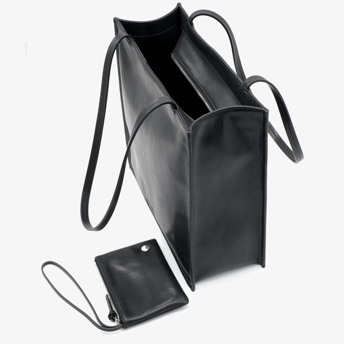 Сумка-шопер 11121 выполнена из натуральной кожи черного цвета. Сумка прямоугольной формы, имеет твердый каркас, плотное дно. Дополнительный съемный обвес в виде кошелька позволяет держать все то, что важно под рукой в течение дня. Дизайн данной модели тщательно продуман и реализован (текстильная подкладка, вид застёжки - молния, плотная ручка). Сумка отлично подойдет под любой Ваш образ и будет неотразимым дополнением к Вашему наряду.