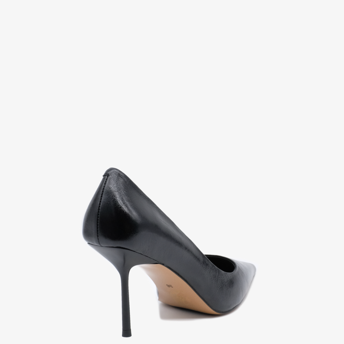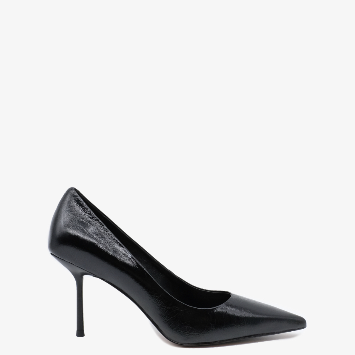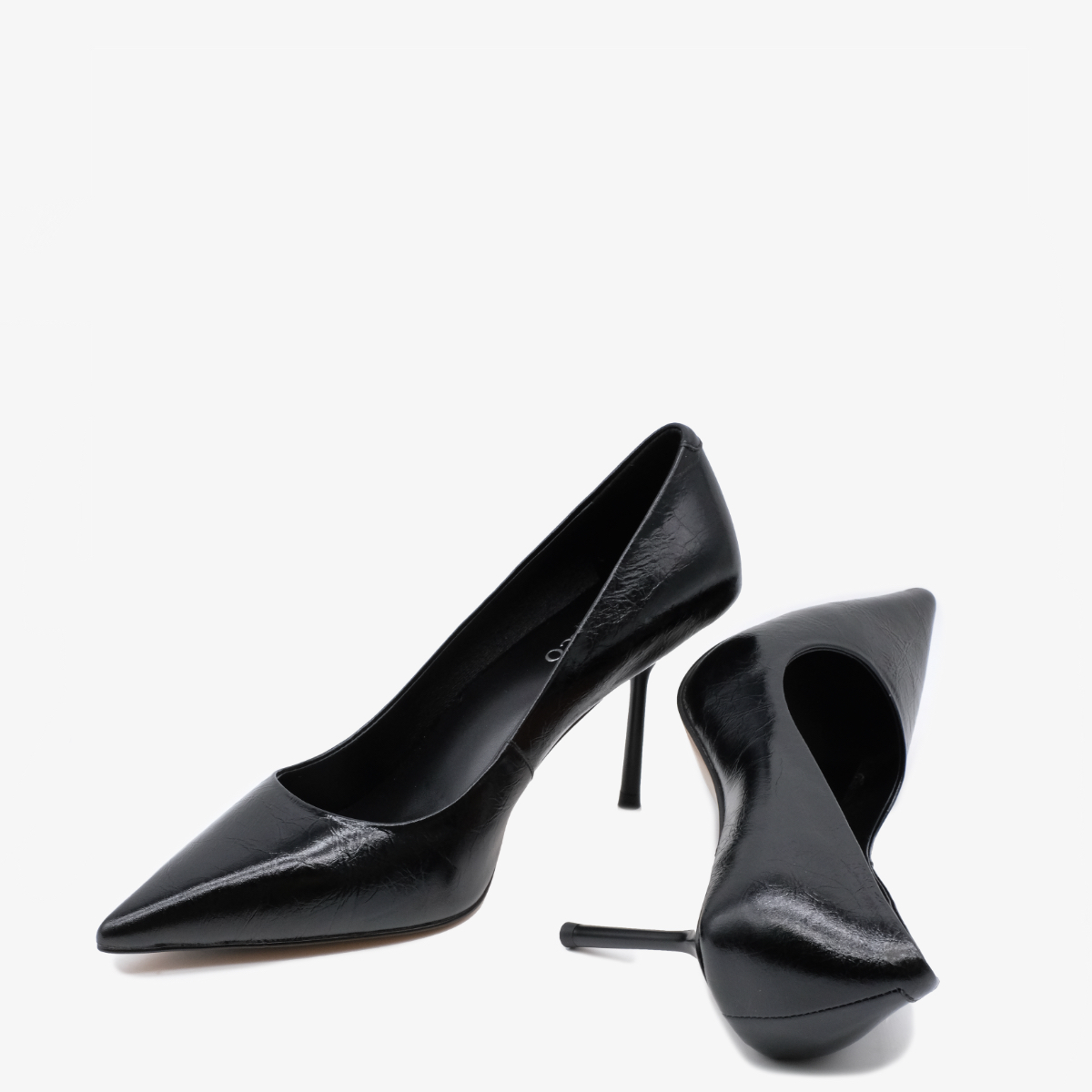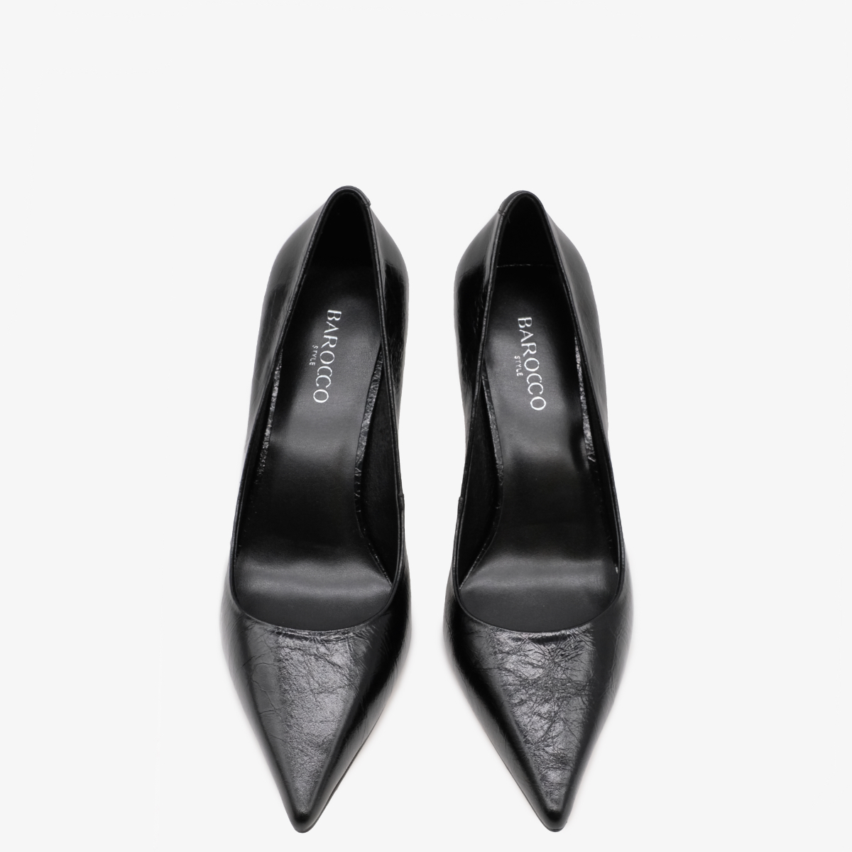 Черные туфли-лодочки 11071, выполненные из натуральной кожи, станут выразительным акцентом Вашего образа. Сочетание устойчивого каблука-шпильки, острого мыса и оригинальной фактуры мятой кожи создает неповторимый, дерзкий и одновременно элегантный стиль.