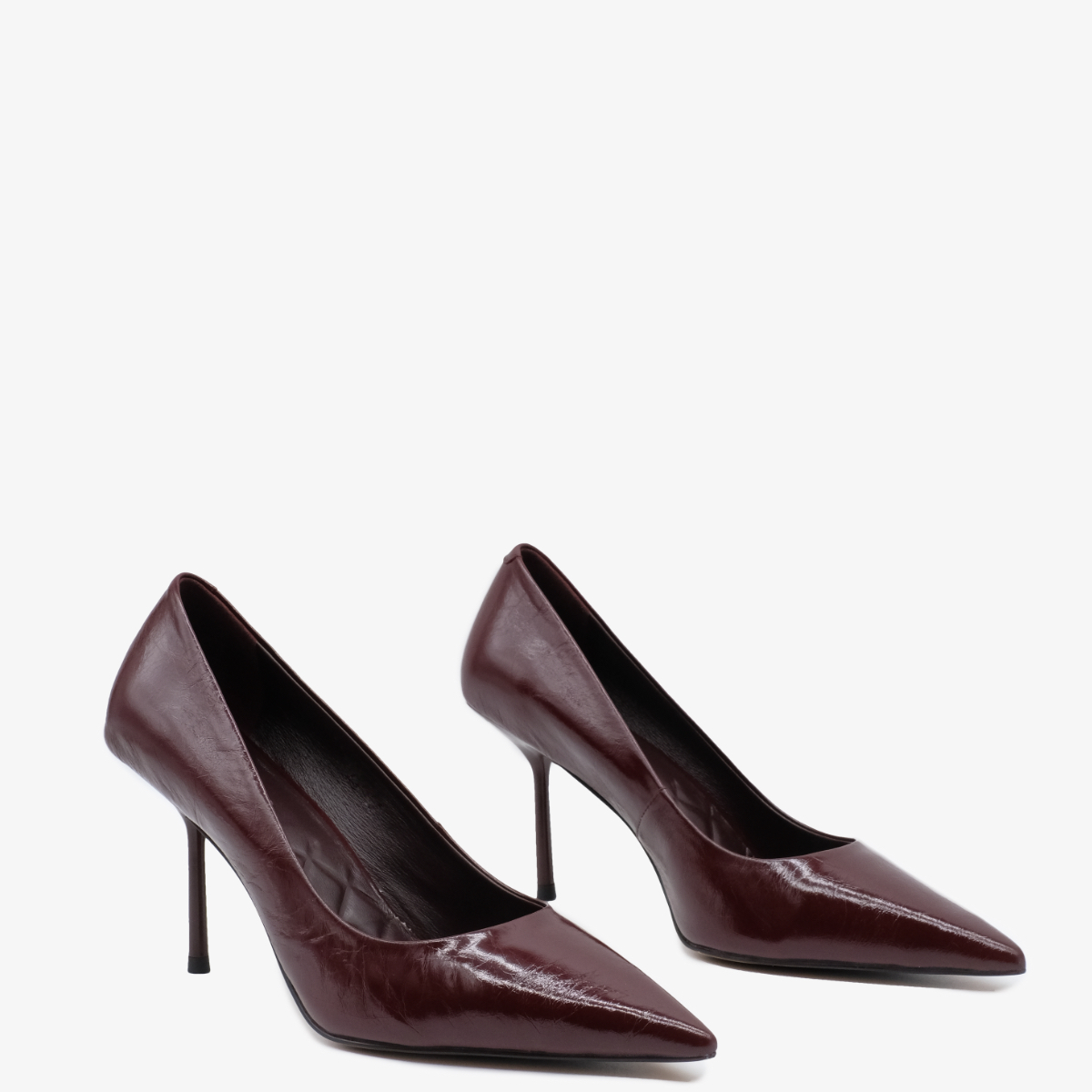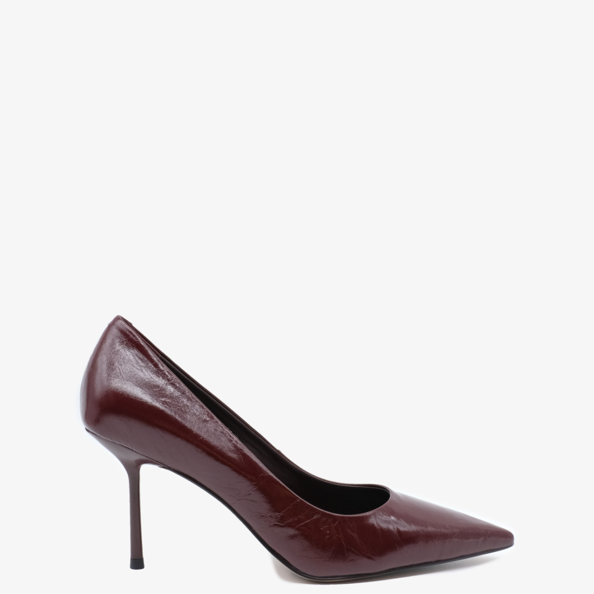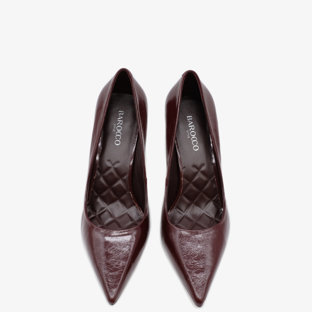Бордовые туфли-лодочки 11072, выполненные из натуральной кожи, станут выразительным акцентом Вашего образа. Сочетание устойчивого каблука-шпильки, острого мыса и оригинальной фактуры мятой кожи создает неповторимый, дерзкий и одновременно элегантный стиль.