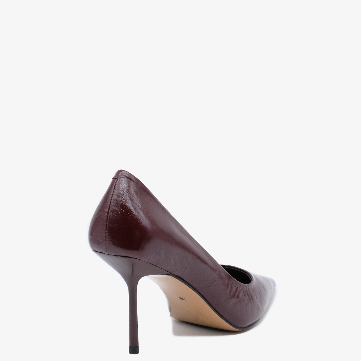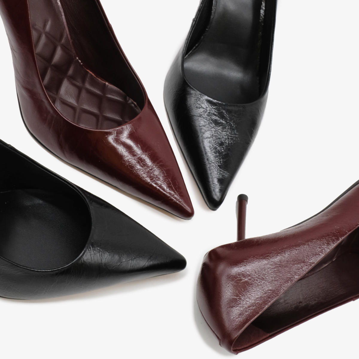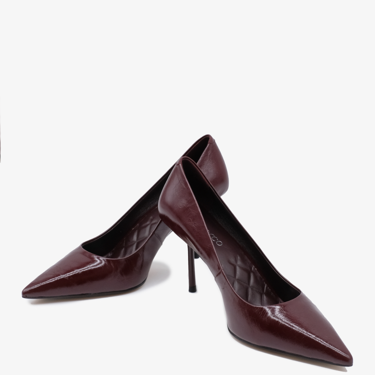 Бордовые туфли-лодочки 11072, выполненные из натуральной кожи, станут выразительным акцентом Вашего образа. Сочетание устойчивого каблука-шпильки, острого мыса и оригинальной фактуры мятой кожи создает неповторимый, дерзкий и одновременно элегантный стиль.