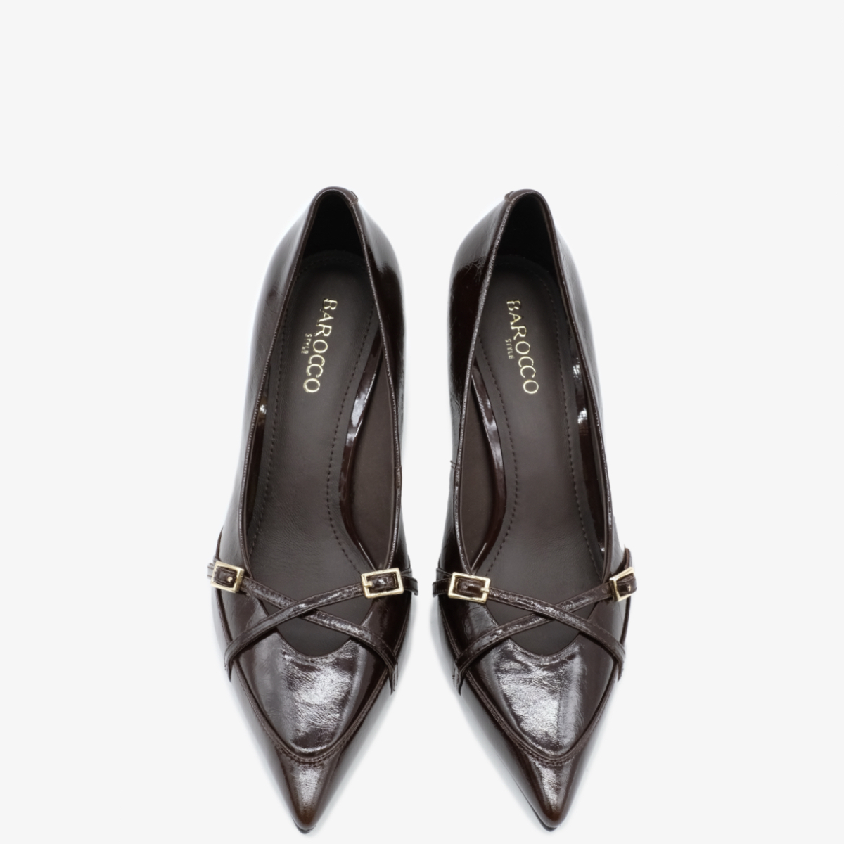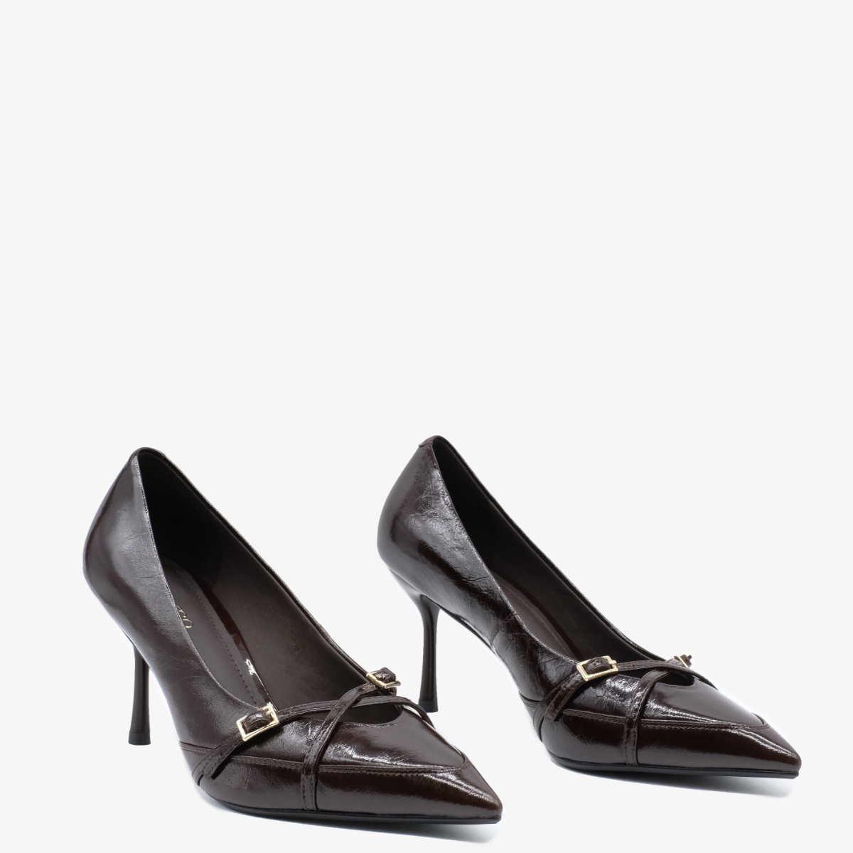 Коричневые туфли-лодочки 11074, выполненные из высококачественной натуральной кожи, станут ярким акцентом Вашего образа. Устойчивый каблук-шпилька и острый мыс создают классический, но при этом дерзкий силуэт, а уникальный декор в виде ремешков на мысе добавляет современности и индивидуальности.