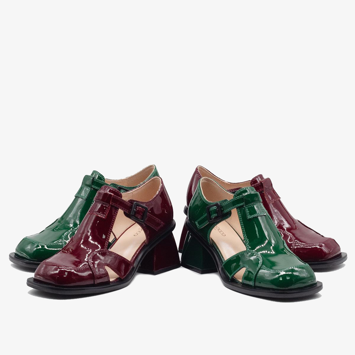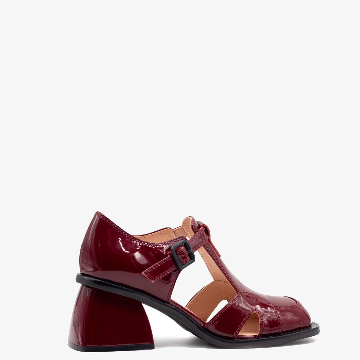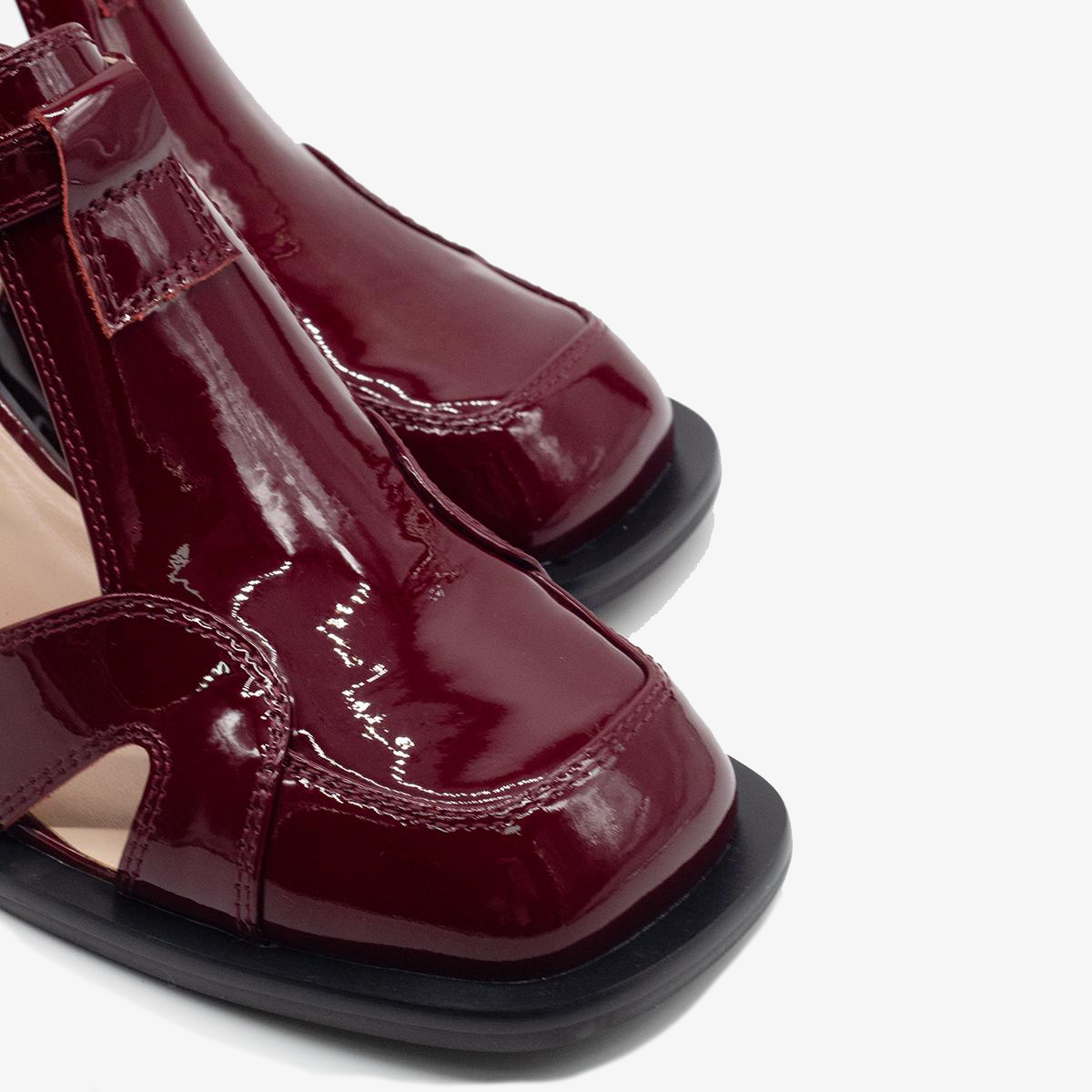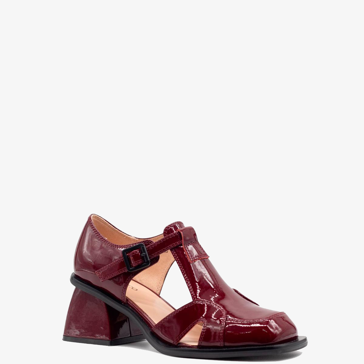 Туфли 9449 из натуральной лакированной кожи бордового цвета - стильный выбор для модных женщин. Ключевая особенность этих туфель - широкий устойчивый каблук (каблук обтянут натуральной лакированной кожей), прямоугольный мыс, застежка на ремешок с пряжкой на подъеме, стиль Мэри Джейн, что придает удобство и изысканность Вашему образу.