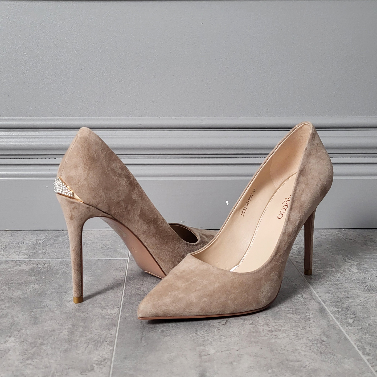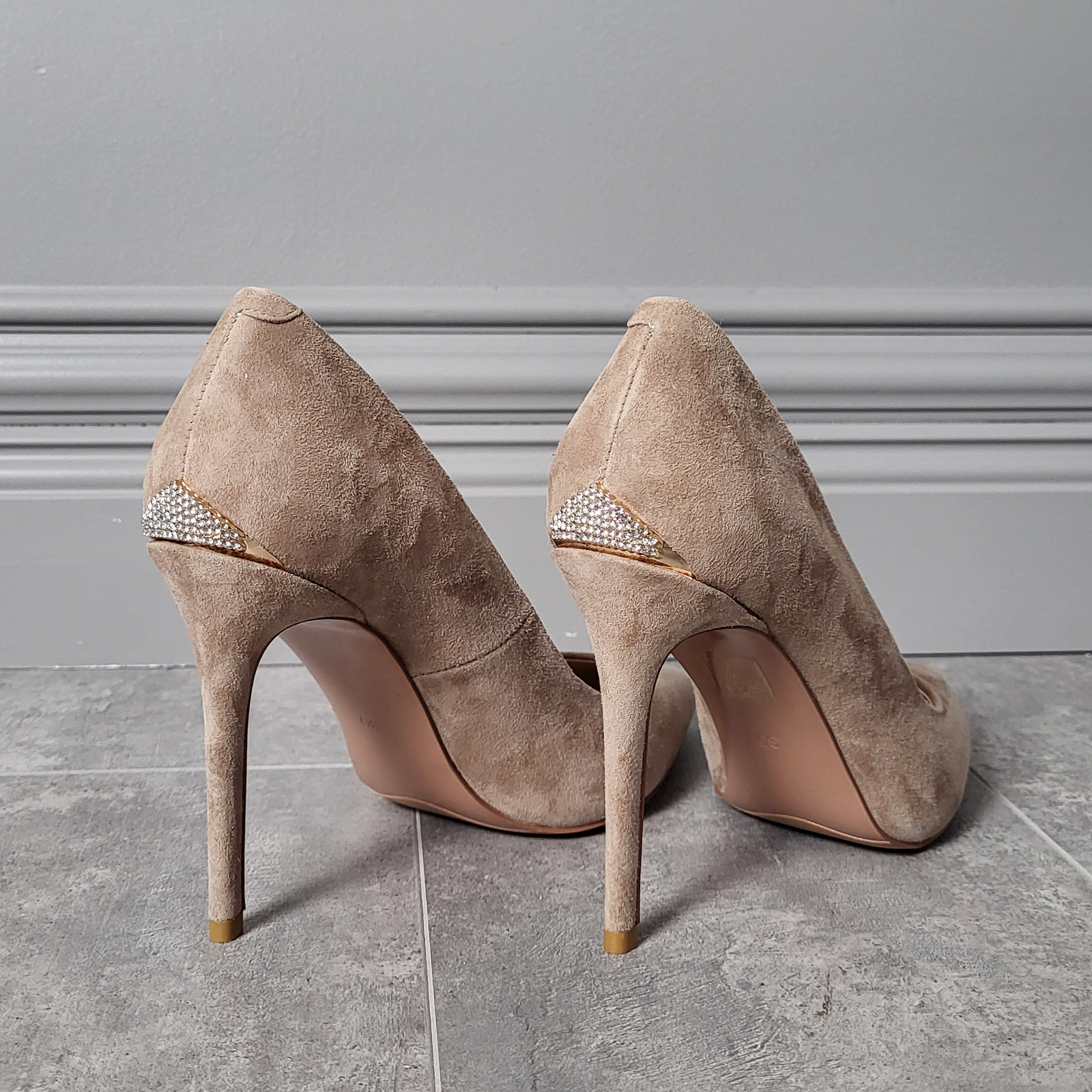 Туфли 8913 украсят собой и статусный, и комфортный образ. Туфли из качественной натуральной замши бежевого цвета идеально сочетаются с одеждой разного стиля. Поэтому обладательнице туфель всегда просто решить, какой обувью дополнить любимое платье или брюки. Каждый элемент туфель (заострённый мыс, удобная колодка, металлический декор со стразами в пяточной части, устойчивый каблук-шпилька) добавляет им ещё один плюс в плане удобства и практичности. Продуманный дизайн модели позволяет этой обуви оставаться в моде не один год. Примерив туфли 8913 один раз, Вы вновь и вновь будете вспоминать идеальное сочетание изящества и комфорта.