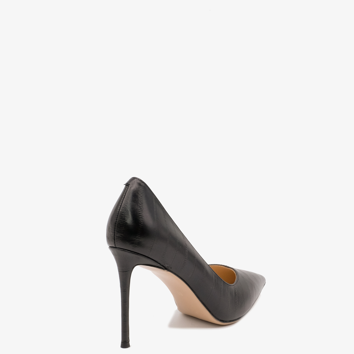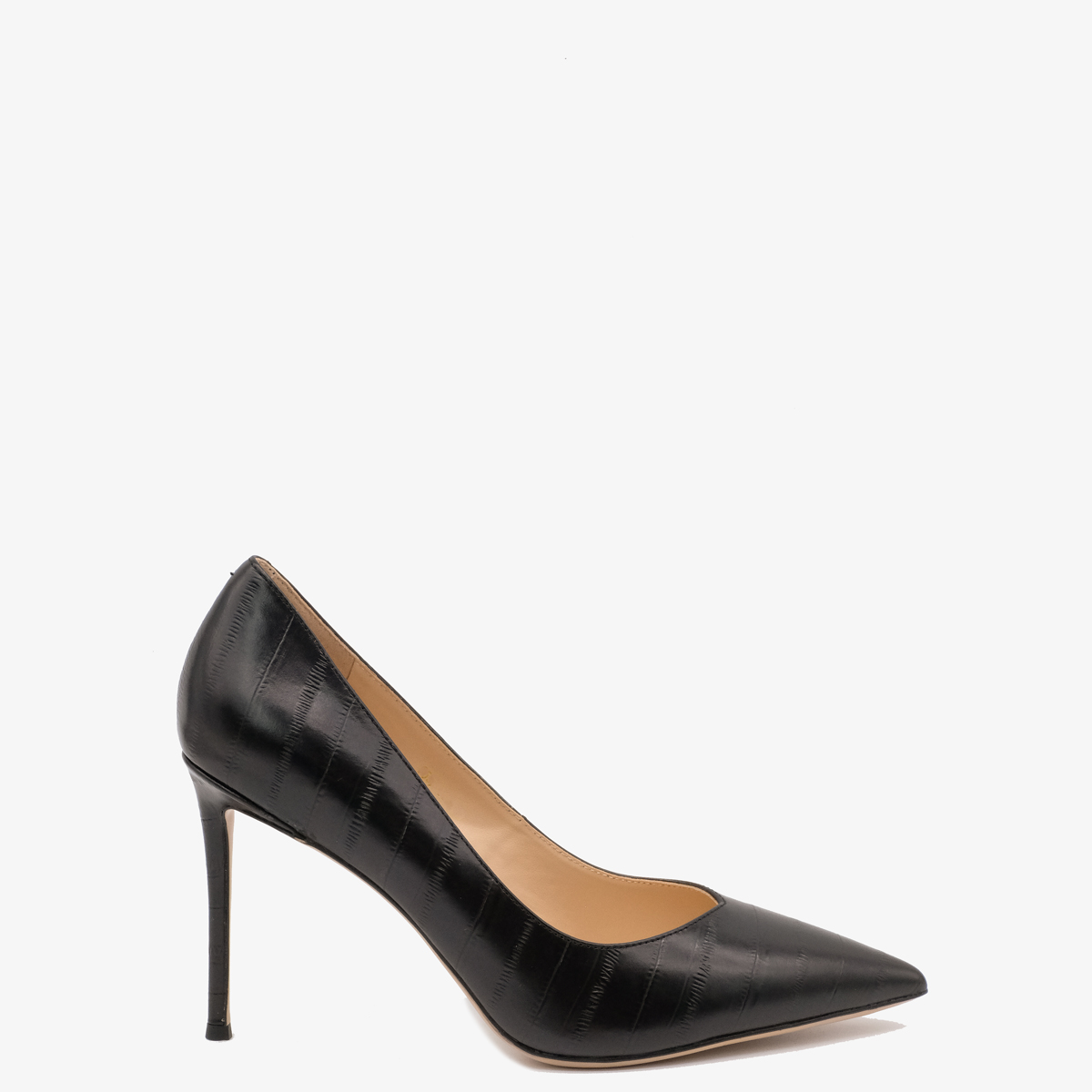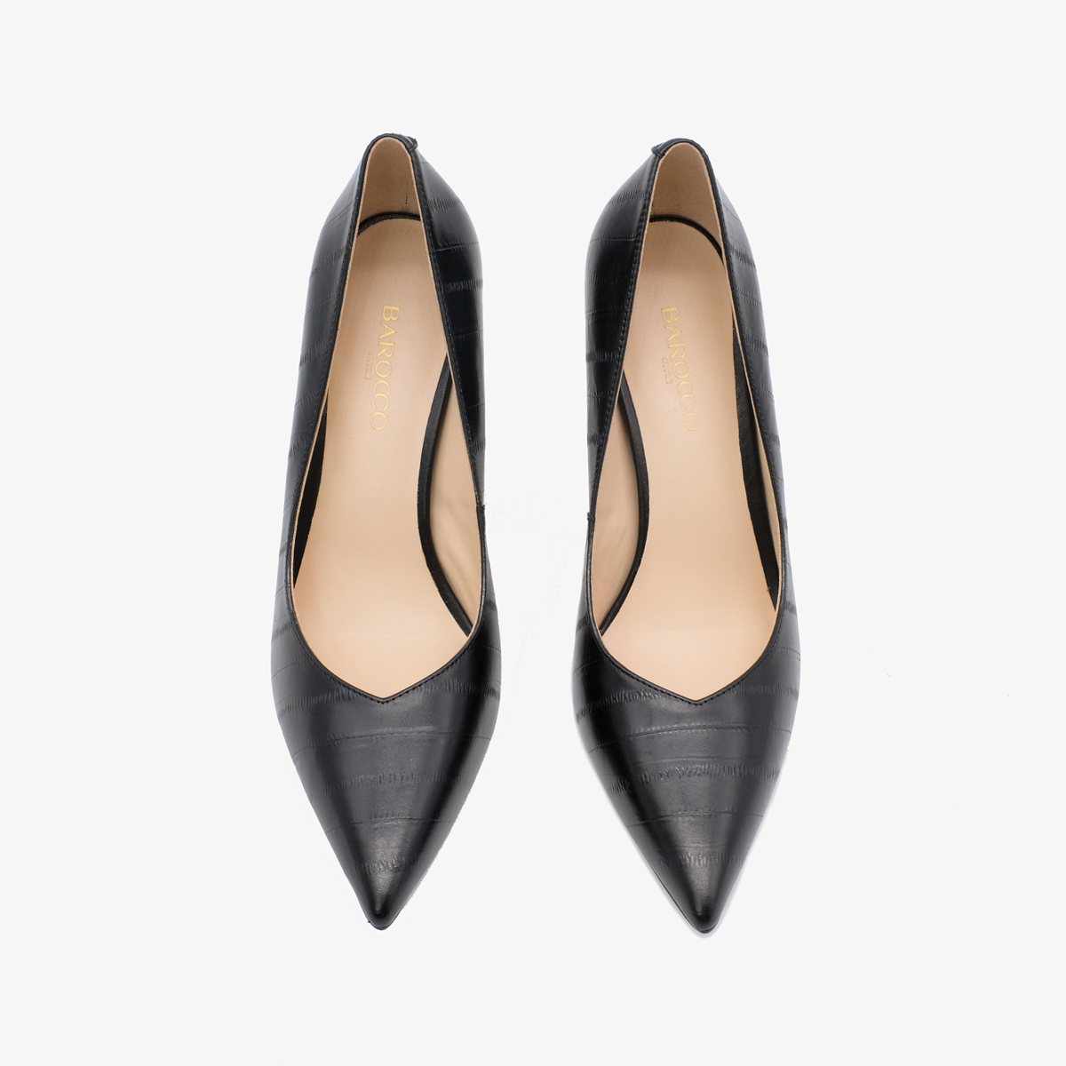 Туфли 9853 черного цвета, выполненные из натуральной кожи, — это идеальный выбор для тех, кто ценит стиль и комфорт. Эти туфли-лодочки с устойчивым каблуком-шпилькой (каблук обтянут натуральной кожей) и острым мысом обеспечивают не только элегантный внешний вид, но и надежную поддержку. Фактура кожи с тиснением, придающая обуви уникальный и стильный вид.
