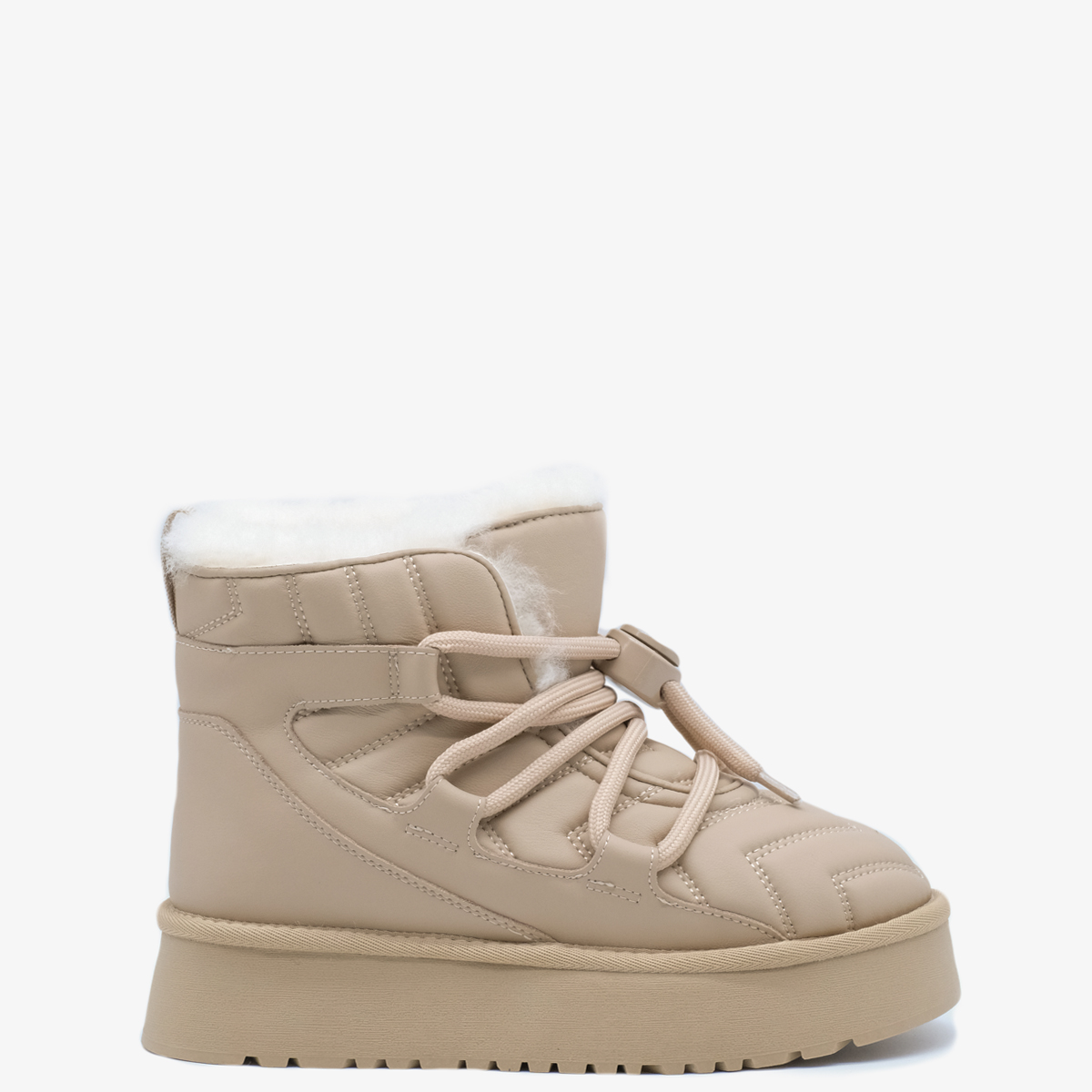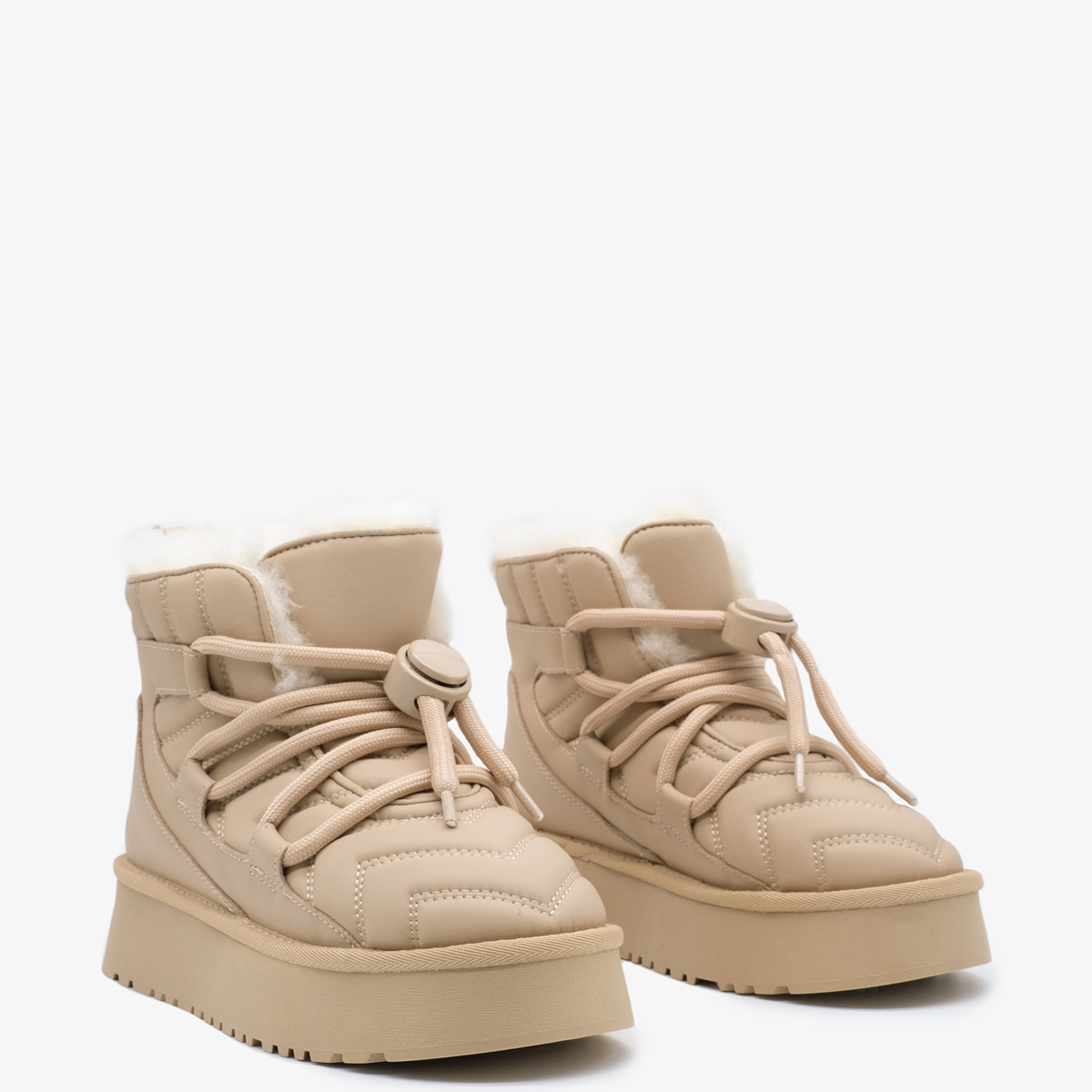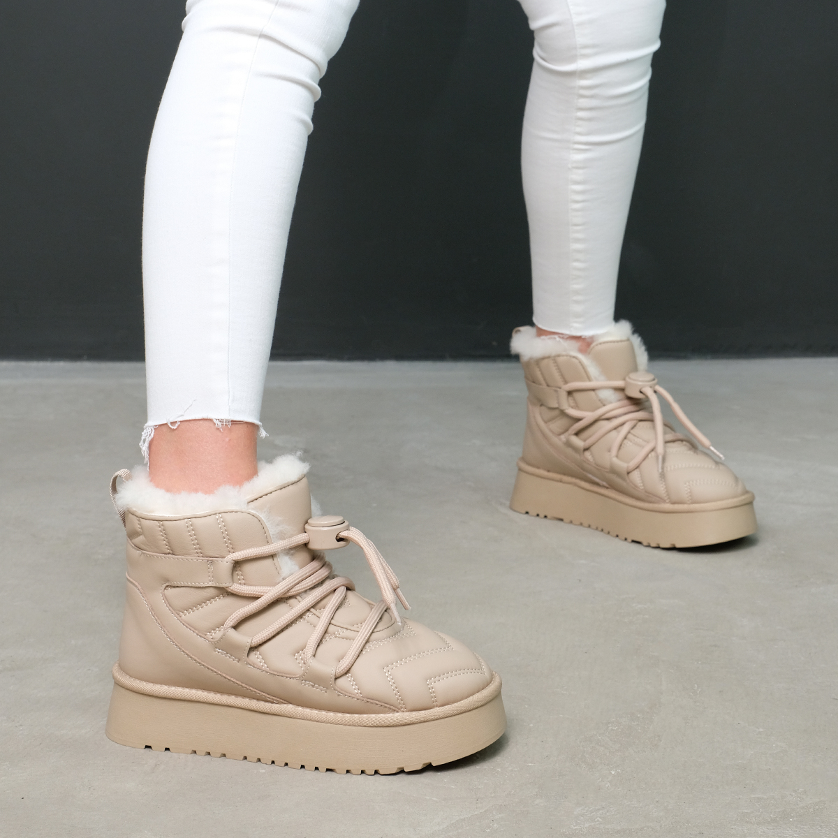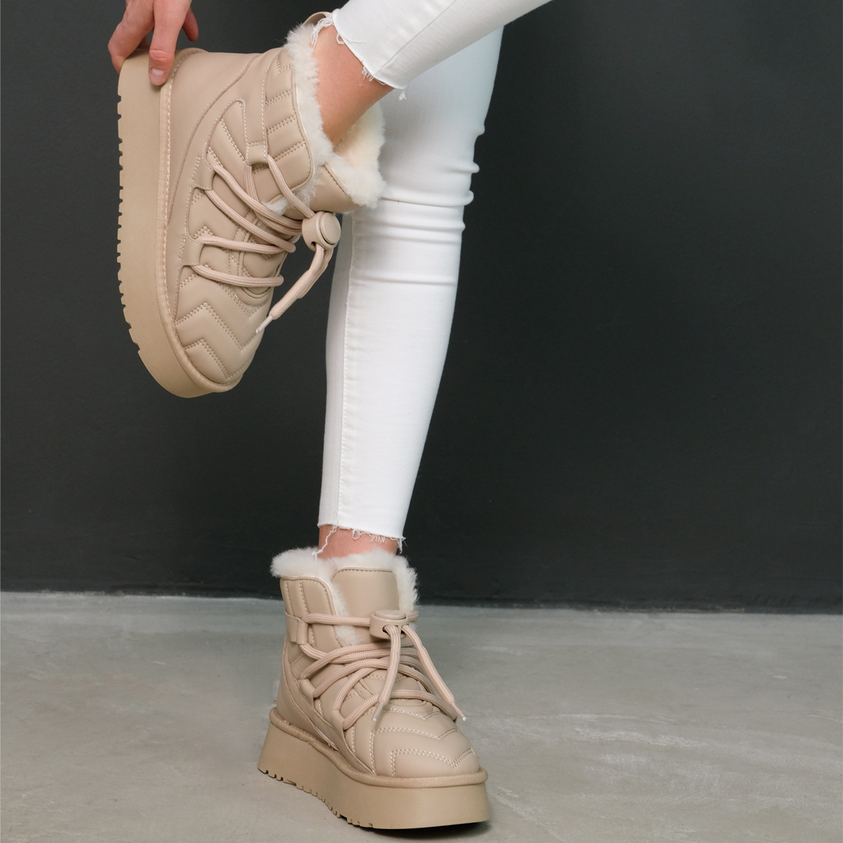 Угги 10069 бежевого цвета, выполненные из натуральной кожи, станут отличным дополнением к Вашему зимнему гардеробу. Эти угги имеют комфортную высоту платформы и закругленный мыс, что обеспечивает отличную поддержку и удобство при носке. Шнуровка на подъеме позволяет легко регулировать посадку, что делает их идеальными для активного использования. Обувь оформлена тиснением, что придает им уникальный и модный вид.