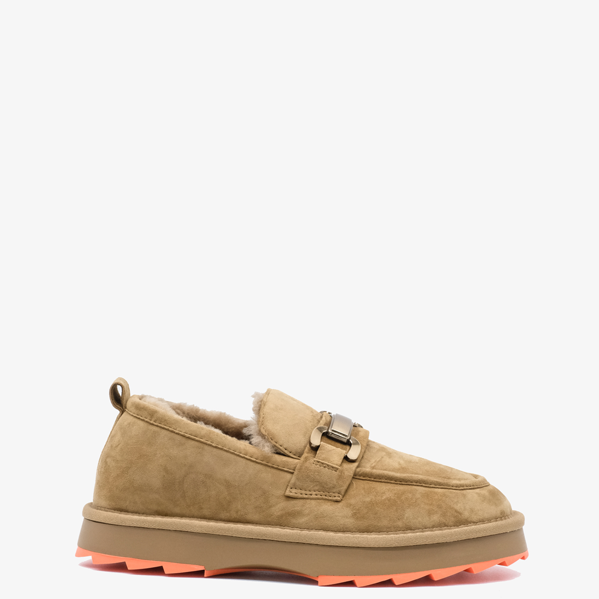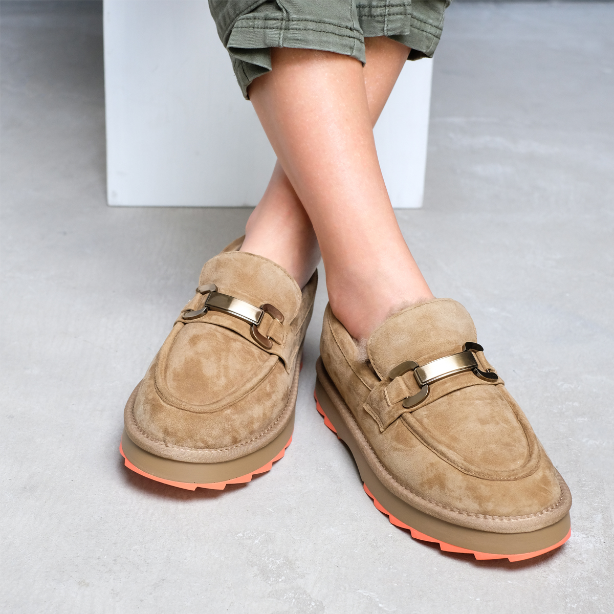 Лоферы 9997 бежевого цвета выполнены из натуральной замши, что придает им элегантный и современный вид. Комфортная высота платформы и закругленный мыс обеспечивают удобство при носке, а металлический декор на подъеме добавляет изюминку и стильный акцент.
